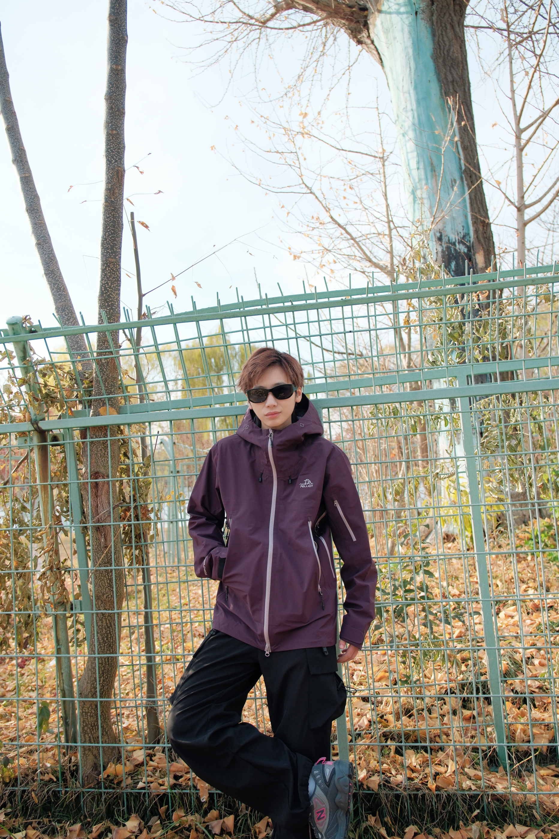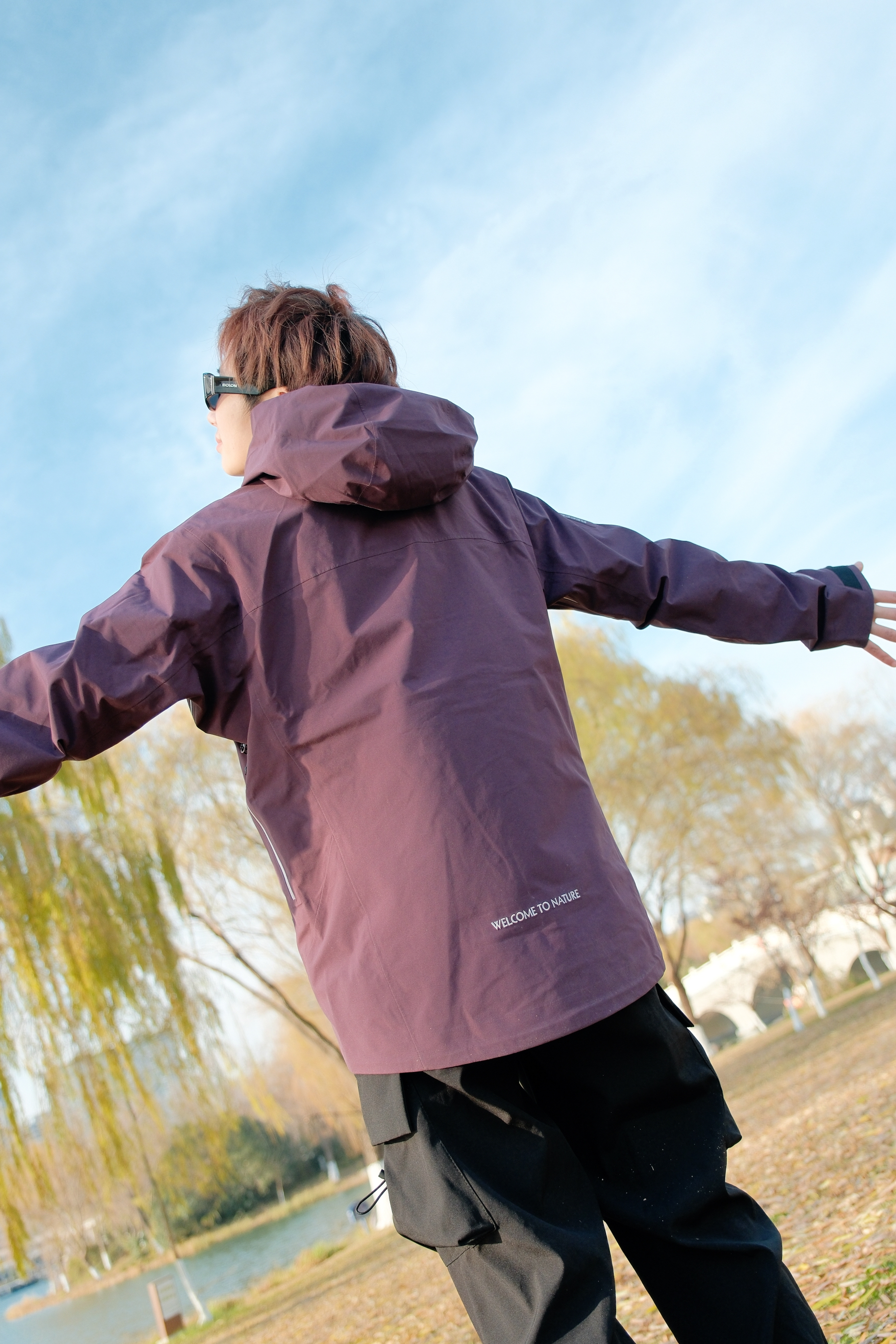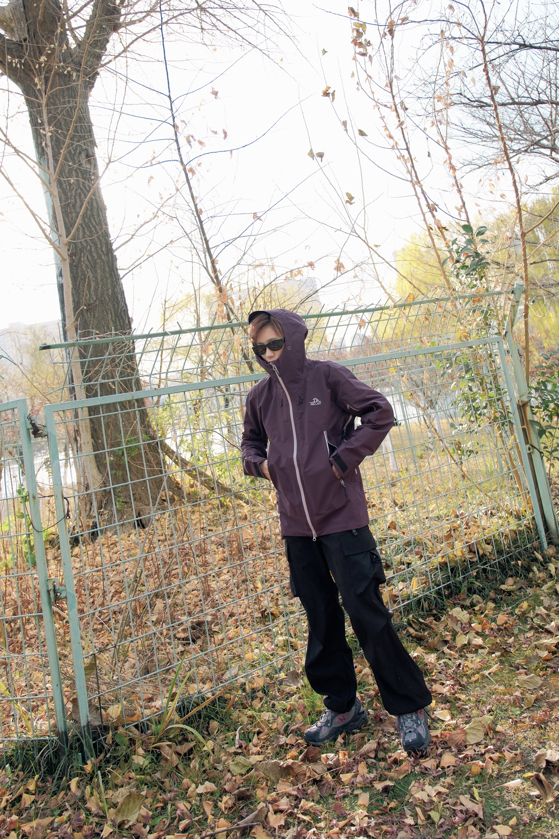解锁今日新皮肤,紫色比想象中更百搭一点 上衣选了件乌梅紫色的冲锋衣 低饱和度的深色系更适合秋冬天 硬壳的材质,防风又防水 下身搭配黑色工装裤不会错 鞋子选了双NB703徒步鞋 整体look户外氛围感直接拉满 这一身日常穿也OK 尺码参考:163cm/45kg 上身S码