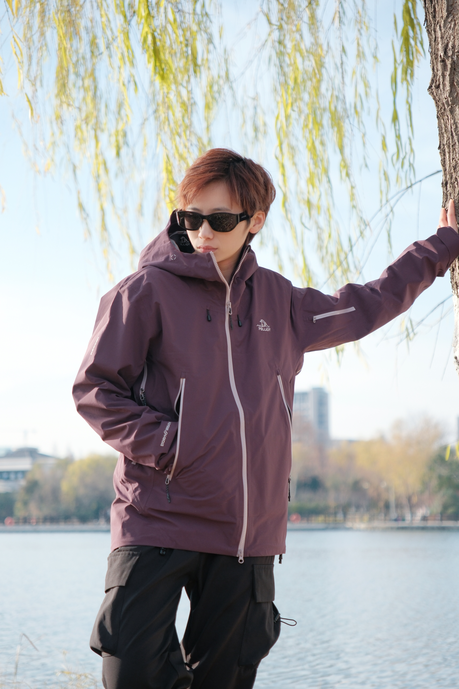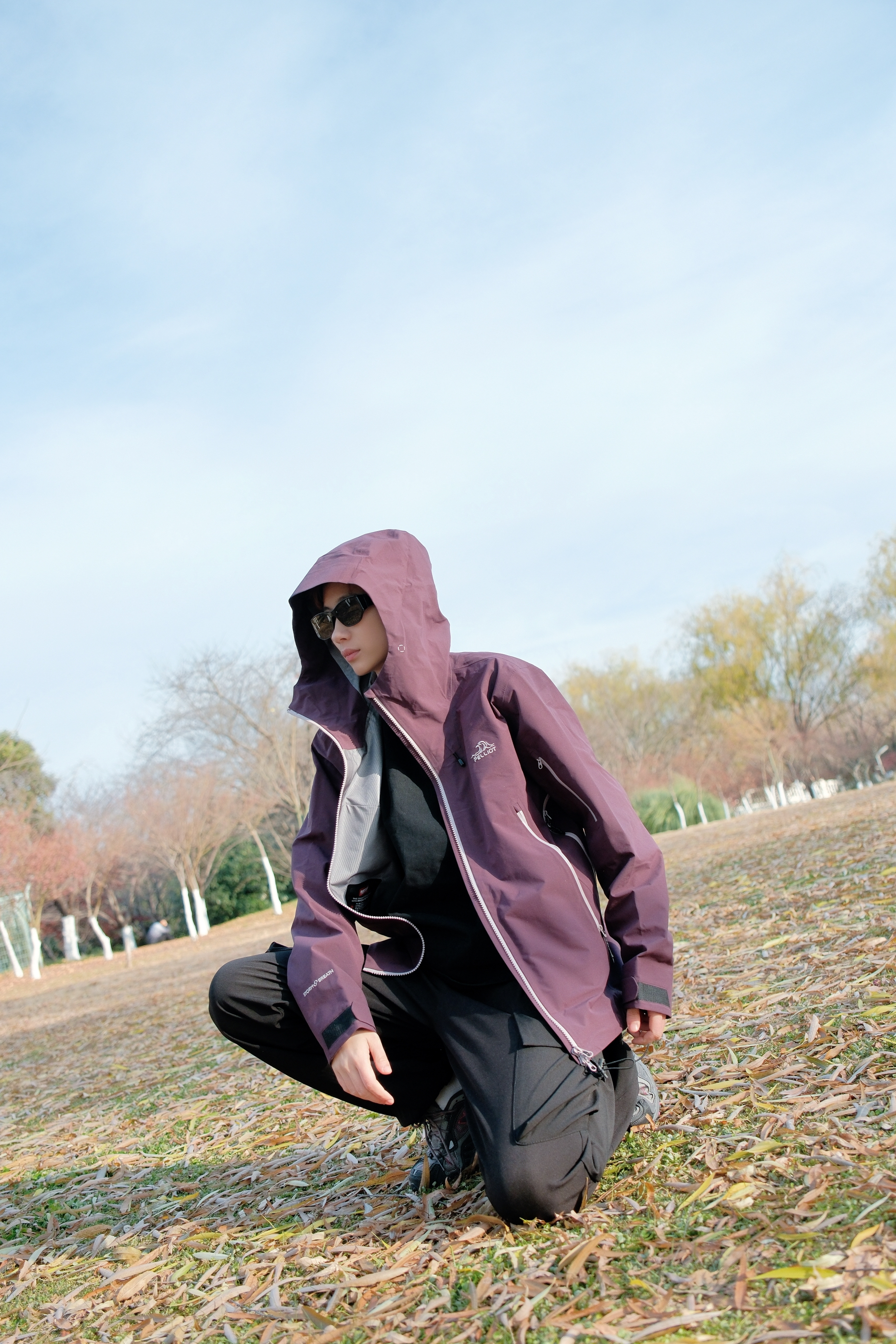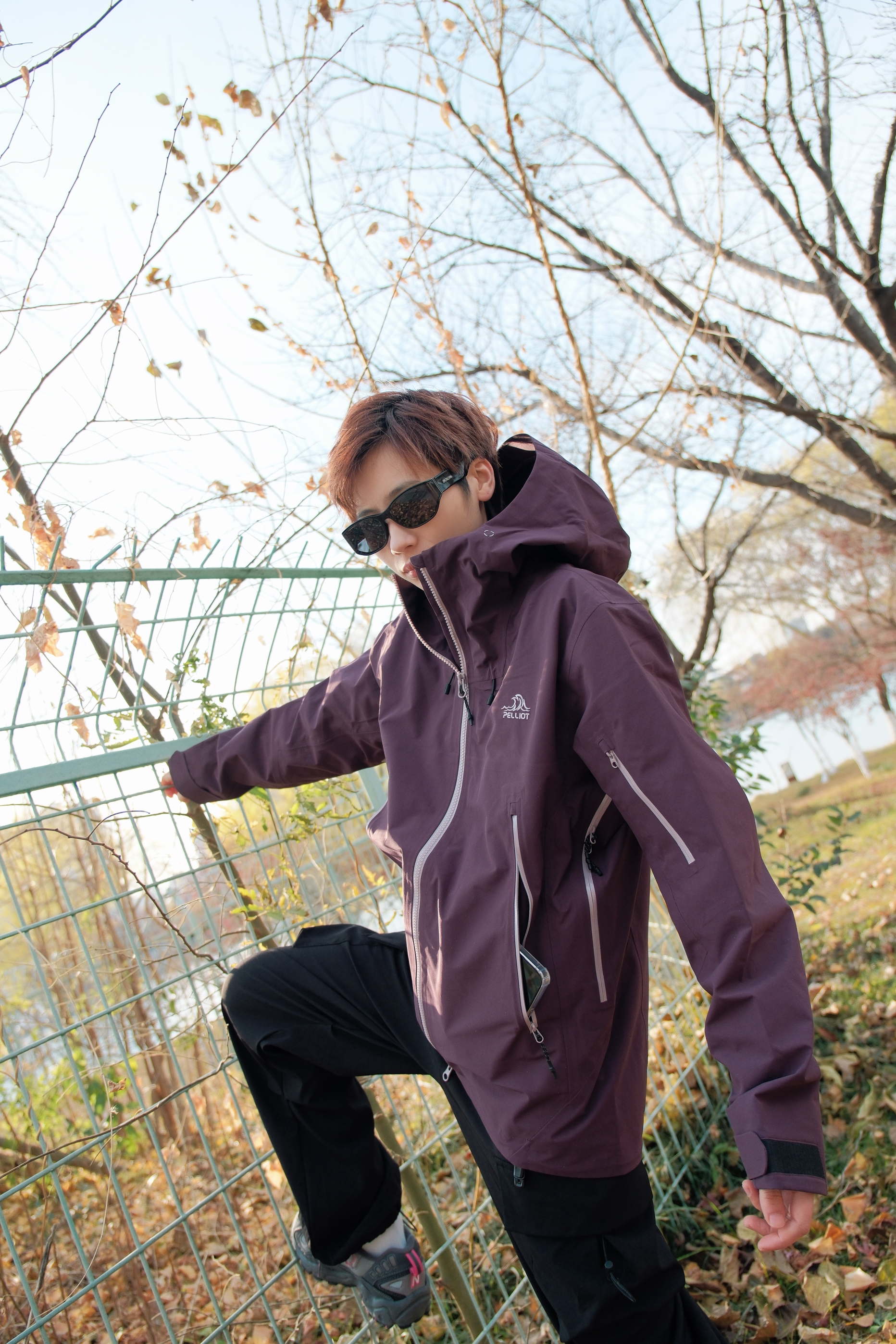 解锁今日新皮肤,紫色比想象中更百搭一点 上衣选了件乌梅紫色的冲锋衣 低饱和度的深色系更适合秋冬天 硬壳的材质,防风又防水 下身搭配黑色工装裤不会错 鞋子选了双NB703徒步鞋 整体look户外氛围感直接拉满 这一身日常穿也OK 尺码参考:163cm/45kg 上身S码