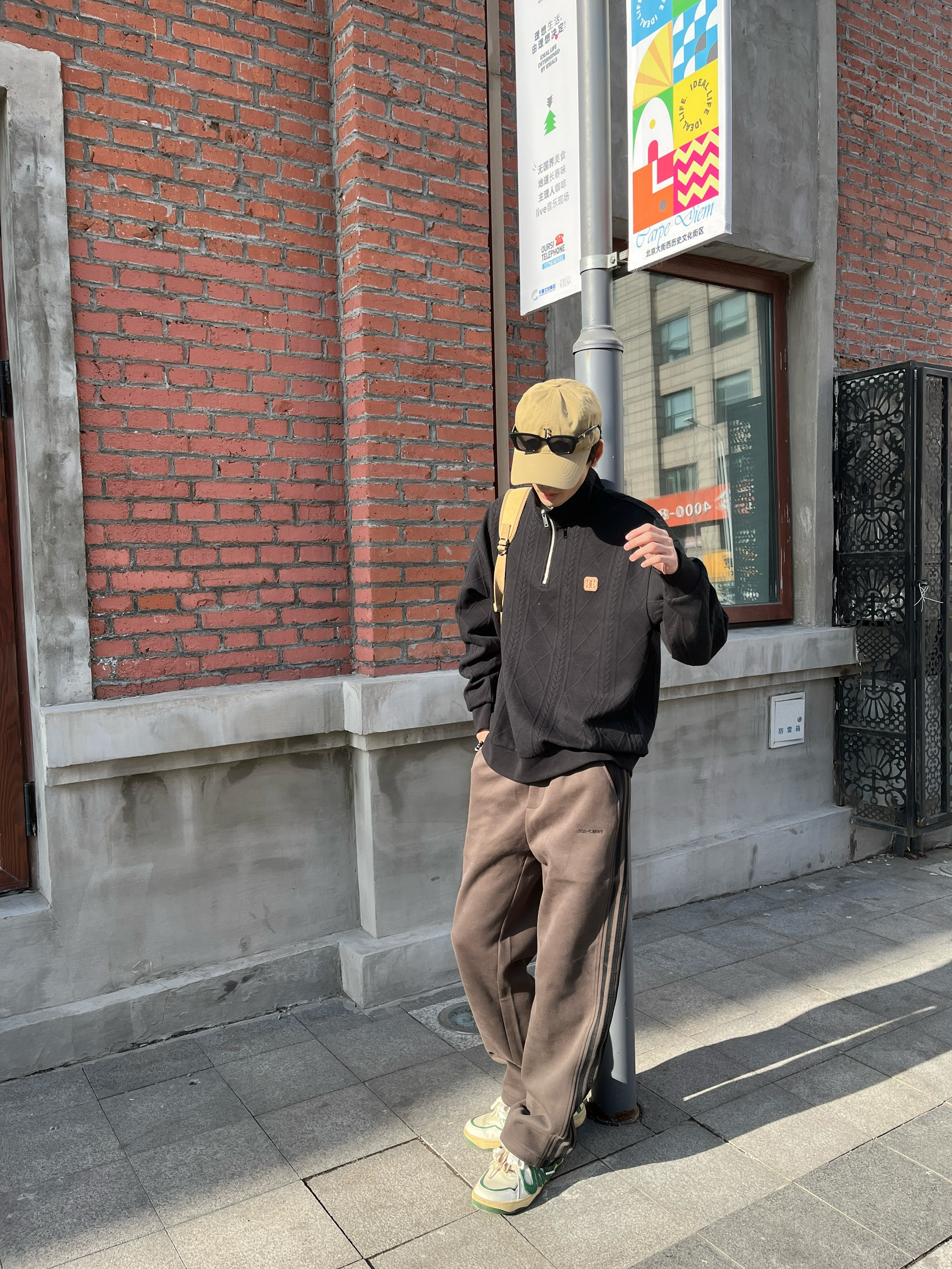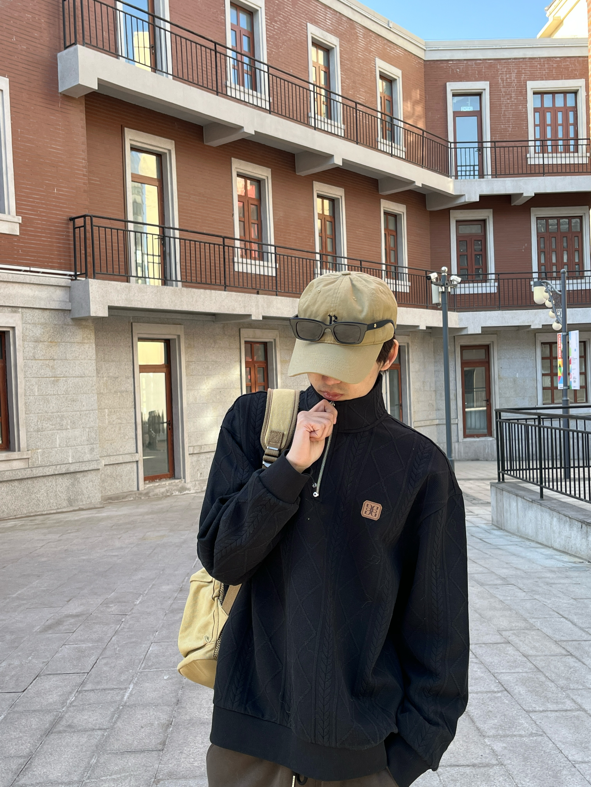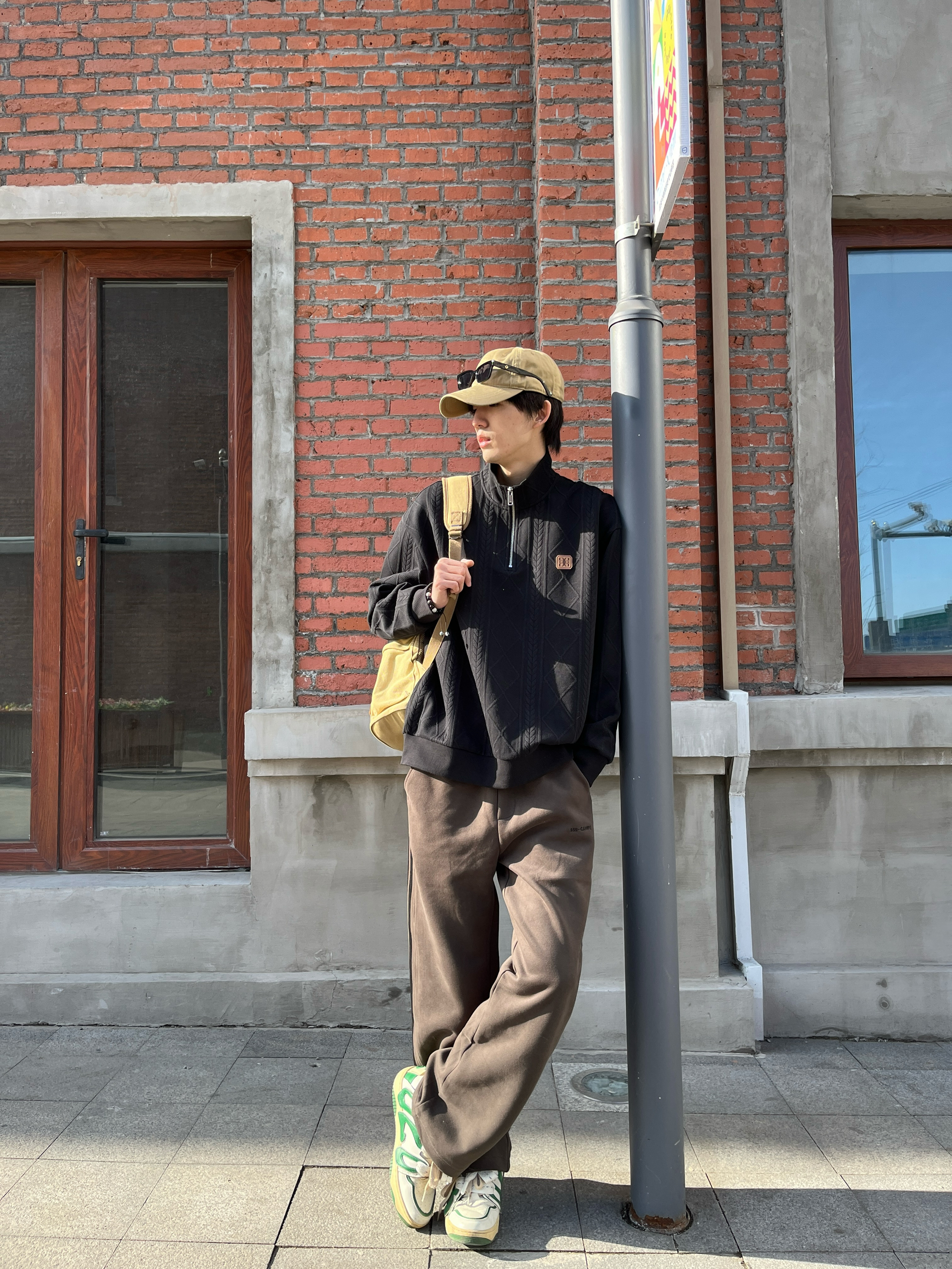 今日来一套春日的黑绿撞色Look 迎接这个生命力满满的春天 上身黑色高领卫衣 自带高冷气场 麻花纹理打破传统纯色的单调 领口暗藏的解构感拉链 成为延伸脖颈线条的关键 下装用森林绿休闲裤直接注入春日生机 侧面条纹设计 切割的腿部线条 悄然重塑下身比例 正好让松弛与克制在微妙平衡中达成默契