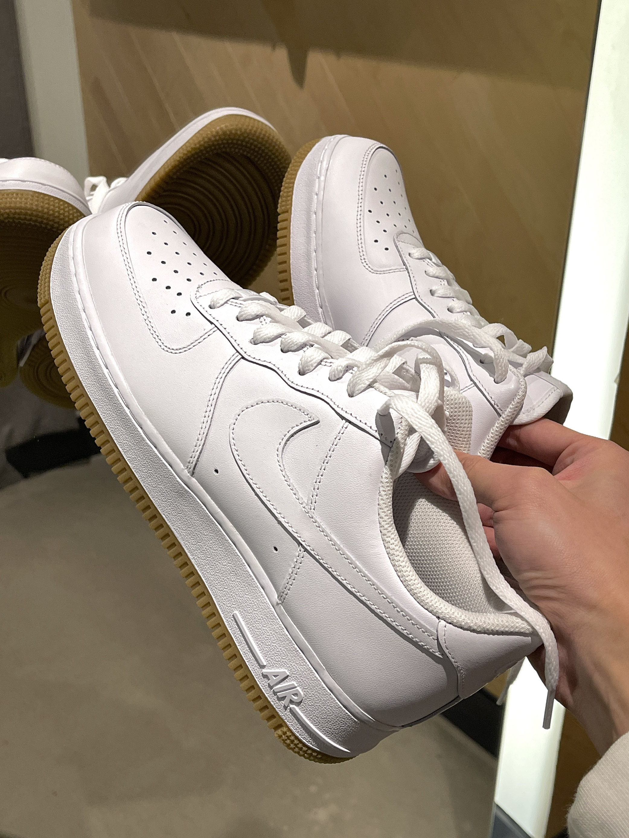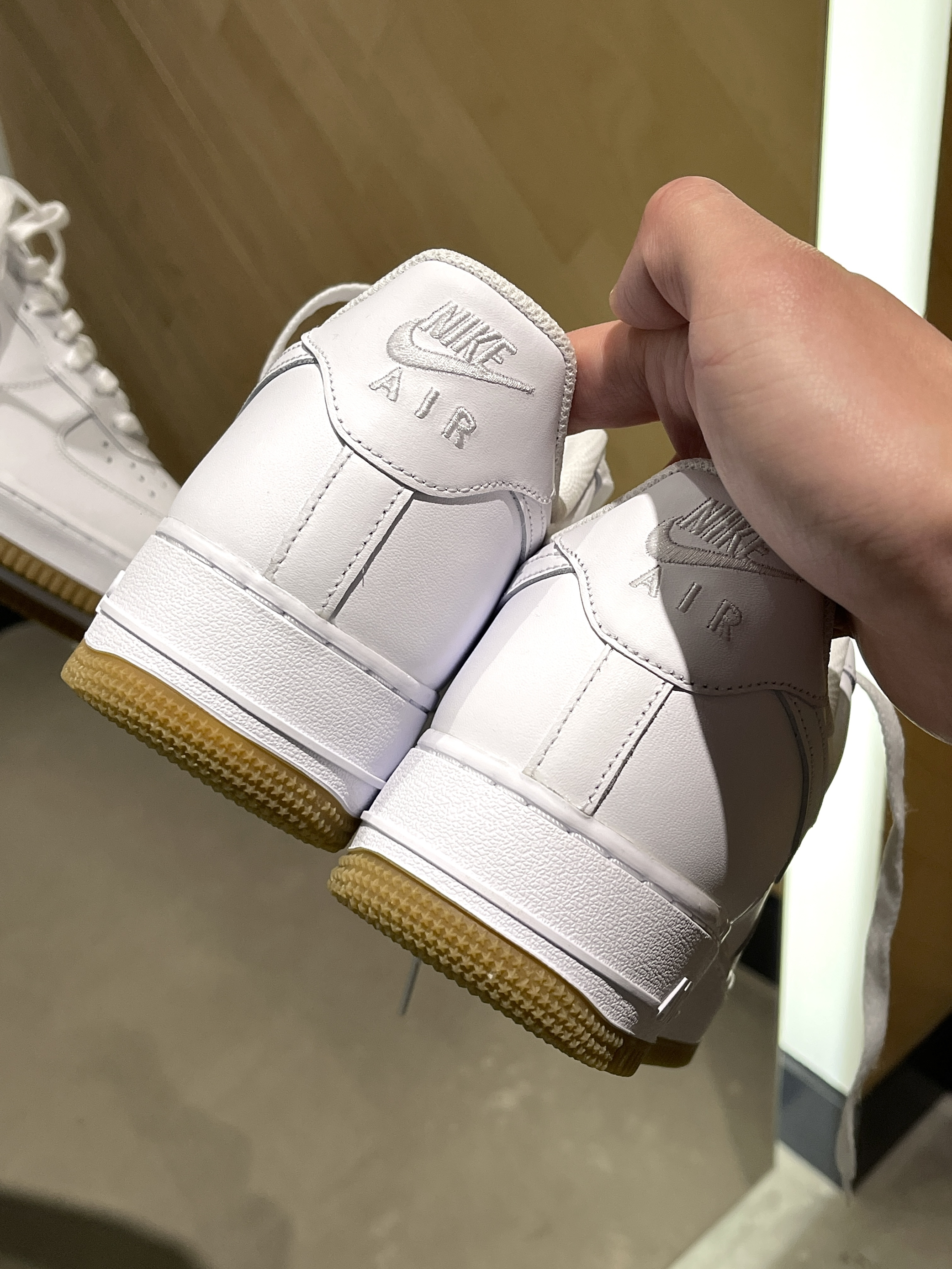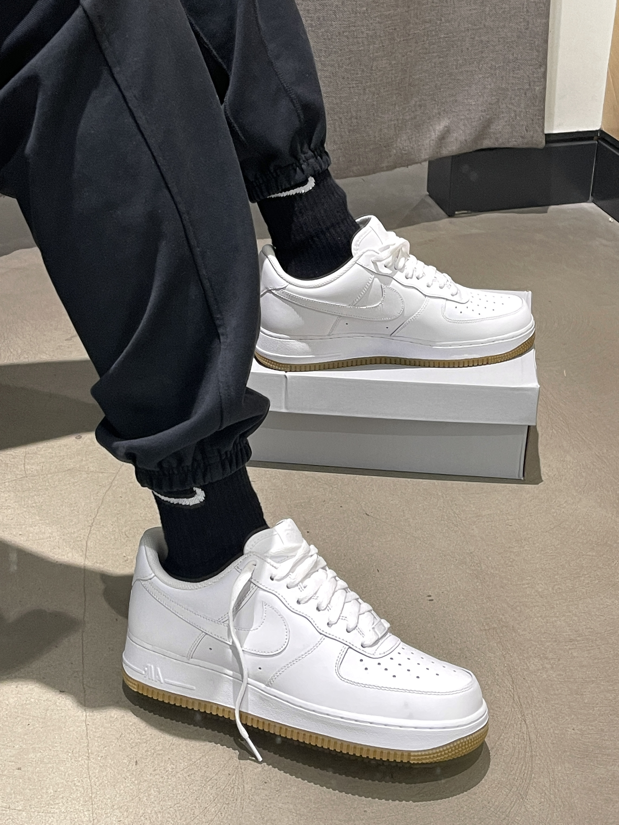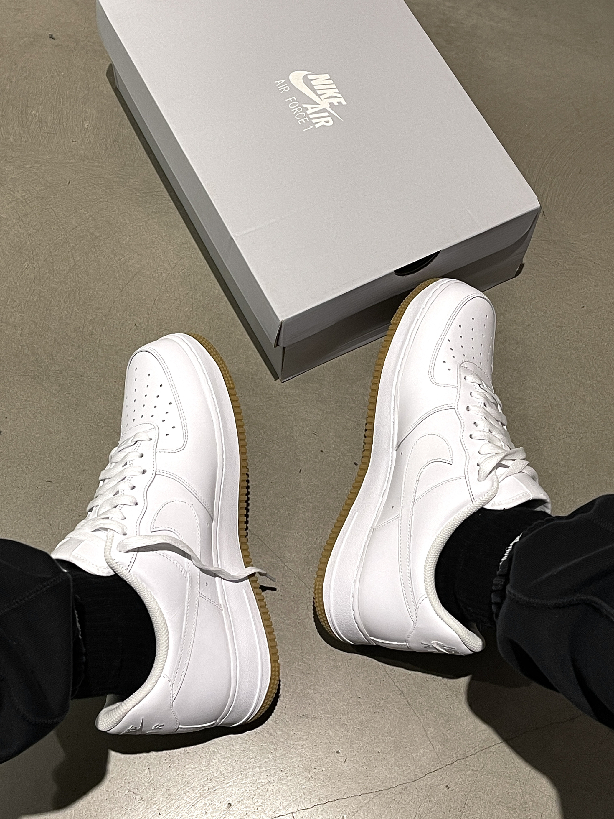 穿来穿去还得是纯白AF1的百搭! 经典的大白鞋,空军一号鞋型,干干净净~ 与纯白AF1有点不一样的就是黄色的生胶底,整体穿搭起来复古感会更足!🤩 空军还是一贯的偏大,拍小半码一码即可!🧳