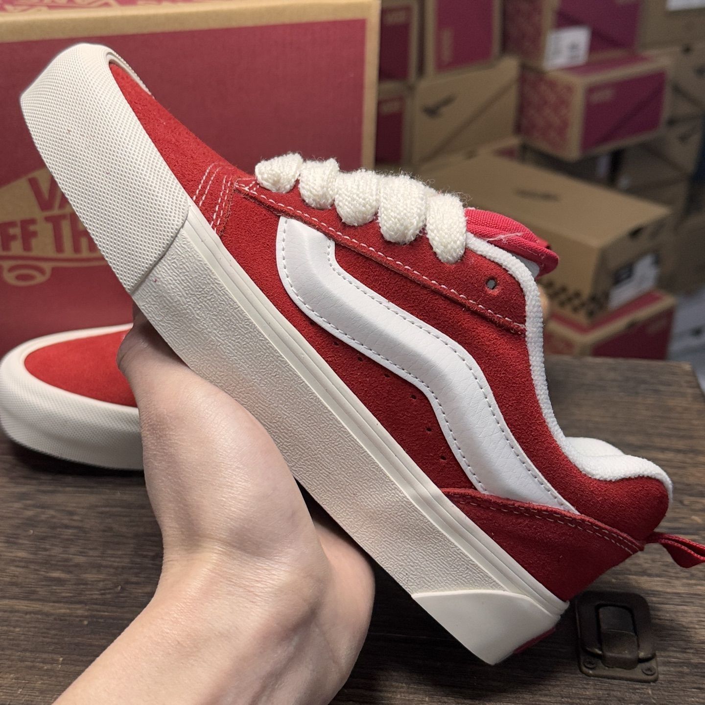 本篇笔记关联了Vans/范斯 Knu-Skool 面包鞋 滑板鞋 板鞋 复古美式时尚防水 白色/深红色等商品,为用户提供真实的使用体验和购买参考。