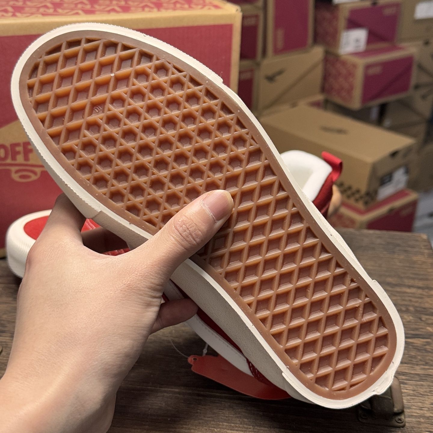 红色的万斯看着就是喜庆 一如既往的百搭,还拥有不错的脚感 很难让人不爱 夏天拍照一定很出片。