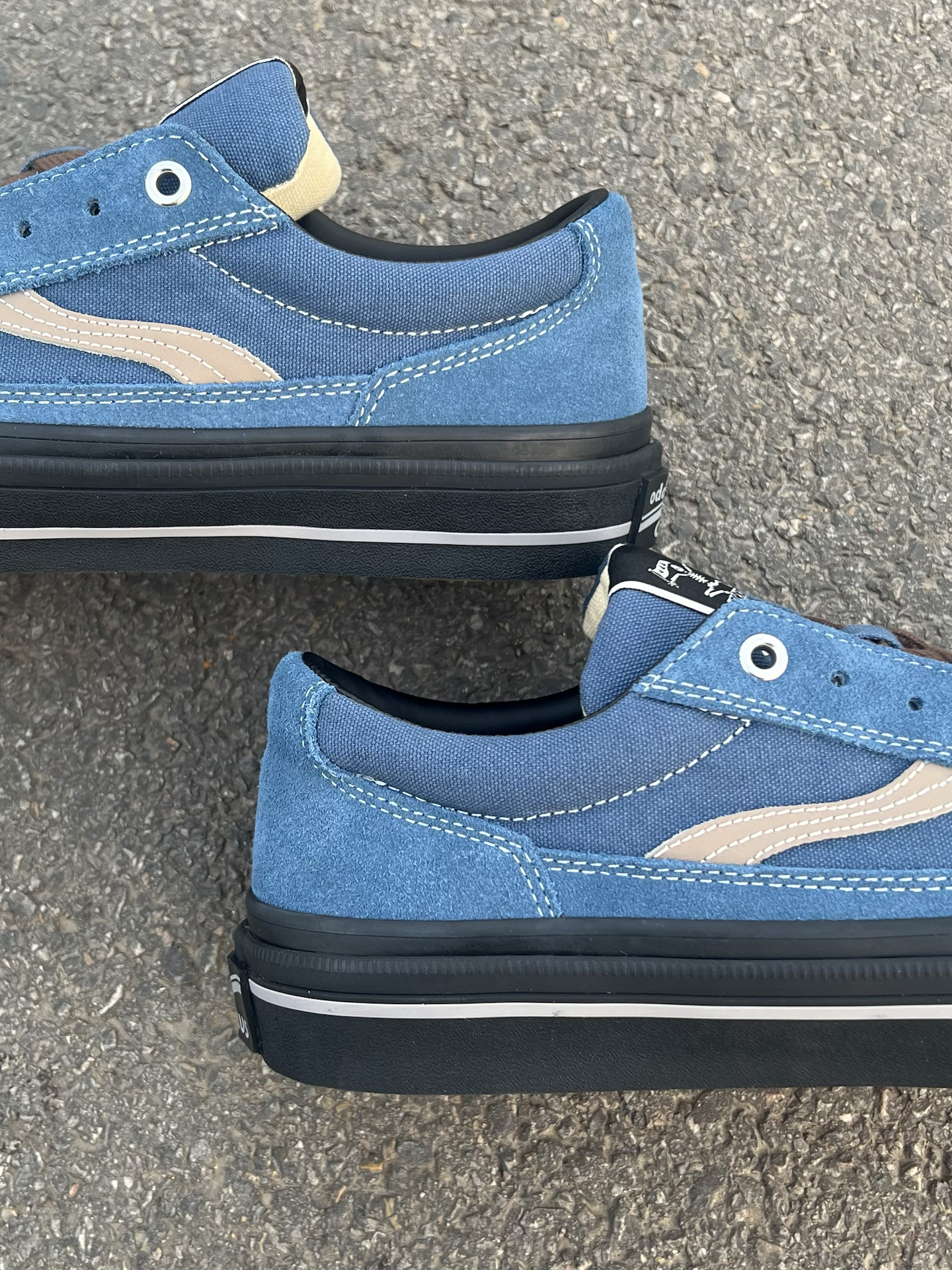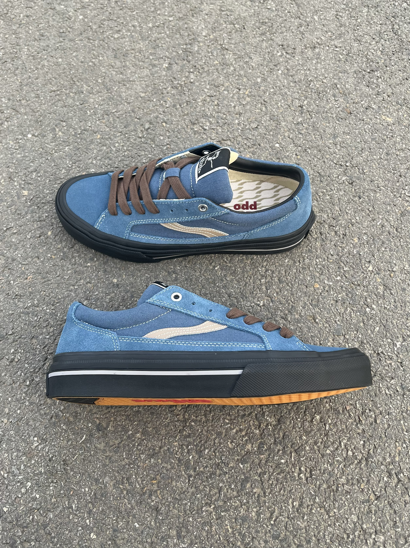 好特别的配色啊 寂静蓝色➕黑色搭配 看起来还蛮清冷感滴 日常搭配牛仔裤就合适 #我的春游鞋搭子 #春游踏青鞋搭子 #新鞋测评计划 #把春天穿着脚上 #我的爆款odd滑板鞋