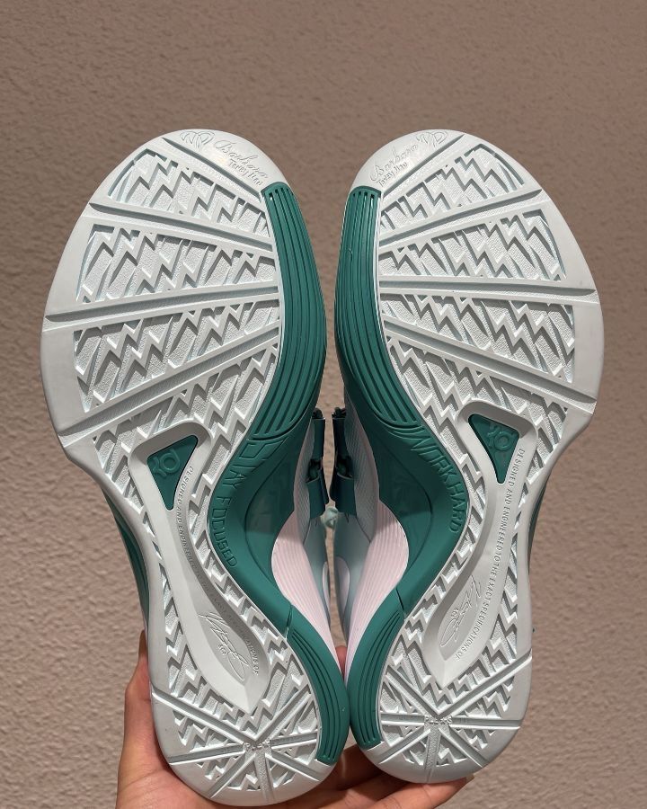 作为杜兰特第四代签名战靴,Zoom KD 4以银绿风暴配色强势回归,将2012年经典实战基因与当代潮流美学深度融合。鞋身采用轻质透气织物搭配热熔补强,重量控制优异(42码单只仅385克),外底热感应纹理复刻元年气象员主题设计,鞋侧金属质感Swoosh与后跟电镀TPU形成赛博朋克视觉冲击。 性能深度拆解 1. 防滑系统:水泥地的吸盘级抓地 外底采用赛车胎纹路+放射状人字纹复合设计,...