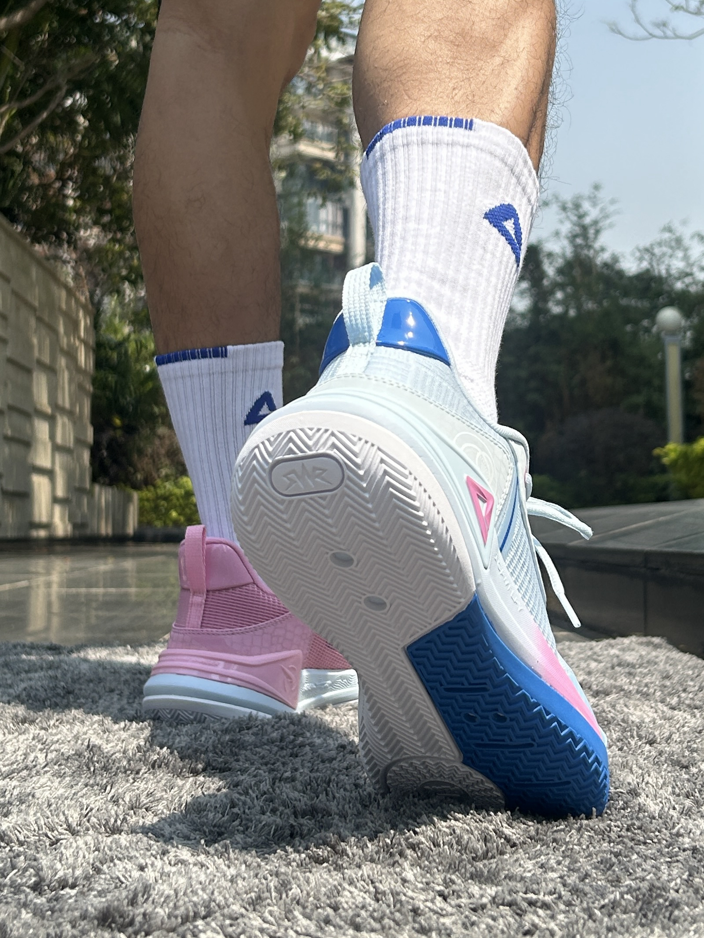 这双匹克游侠2.0篮球鞋简直开挂! ✅SWR外场橡胶大底让我在室内木地板、外场水泥地随便造,而且变相超级稳;全掌态极科技的中底绝了,踩下去又软又弹,膝盖压力瞬间减半;而且鞋面包裹感超贴心,宽脚兄弟也能塞进去不挤脚,透气网纱对我这大汗脚是一大福音! ✅我最喜欢的一点就是鸳鸯配色!颜值炸粉蓝骚气又亮眼,200多块能买到这种配置,学生党闭眼🐛 打球压马路两不误,这性价比确实赢麻了! #匹克宝藏篮球鞋 #...