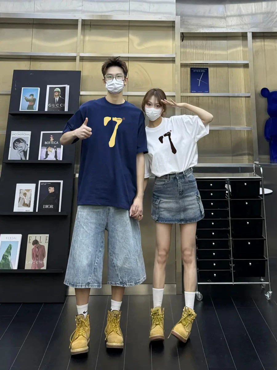 不得不说,这数字短袖太合我俩心意啦!数字图案潮流感十足,巧妙的设计让我们的情侣装与众不同。短袖版型很正,宽松却不显得臃肿,质量更是杠杠的,多次清洗后,印花依旧没掉,版型也没有缩水啥的,性价比超高,真的爱了爱了! 图片来源于@夏天