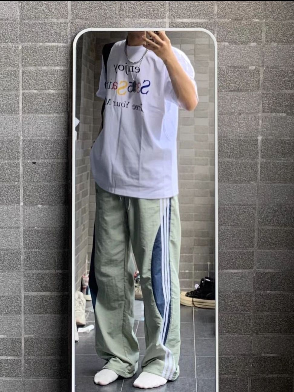 NTBF 多巴胺速干三条杠撞色直筒伞兵美式休闲长裤 男女同款🐮 🐮绿白色真嘟好看,宽松版型舒适的很~轻薄好穿~ 浓浓的一股春夏感!穿上帅帅的。🐵这条裤子版型好棒,很显腿直修饰腿型。🐒宽松的对身材包容性很强,撞色条纹设计很吸睛,绿色的很有春夏氛围感。拍照也很出片哦~图片来自于博主晓晓Ov
