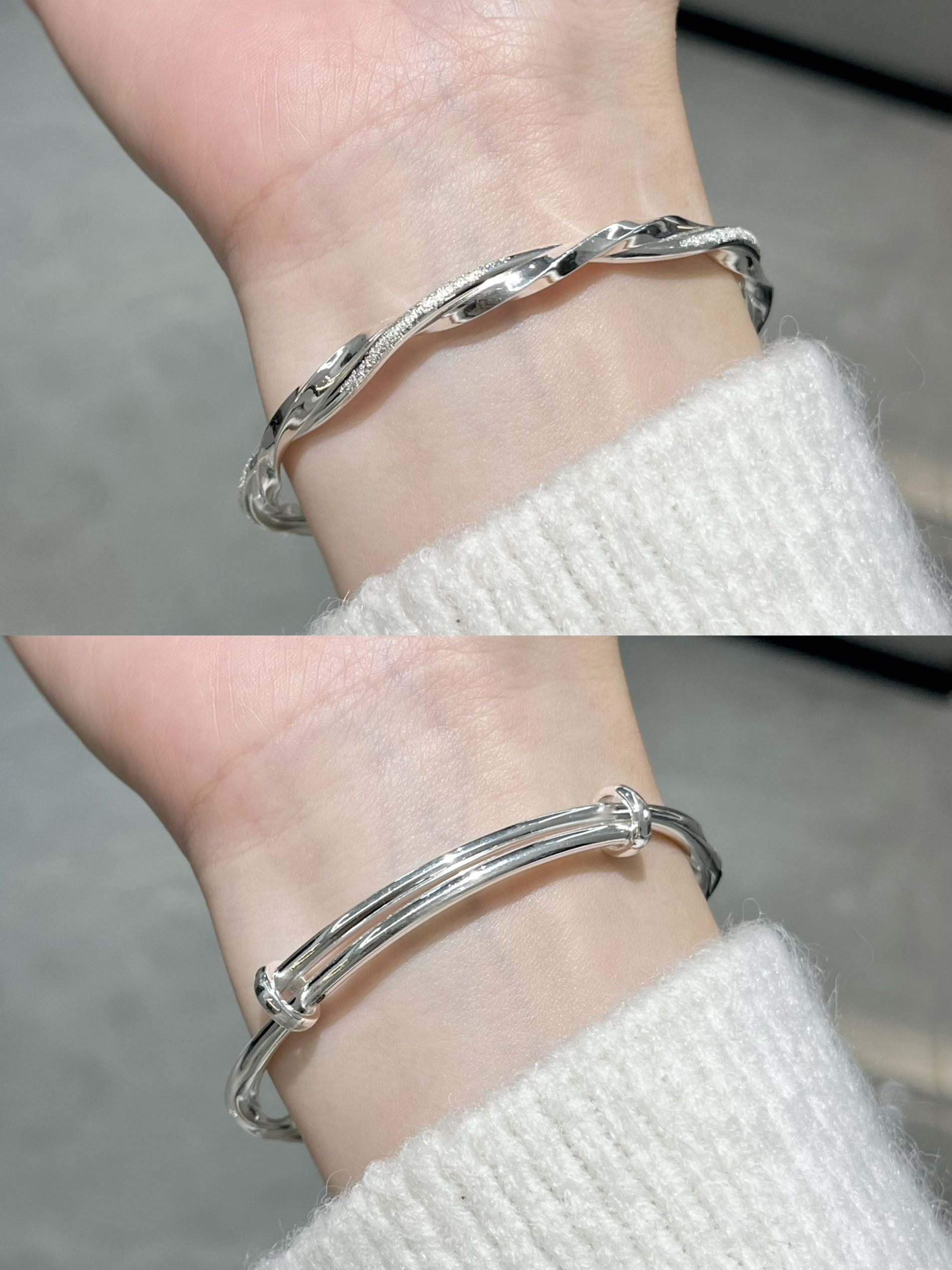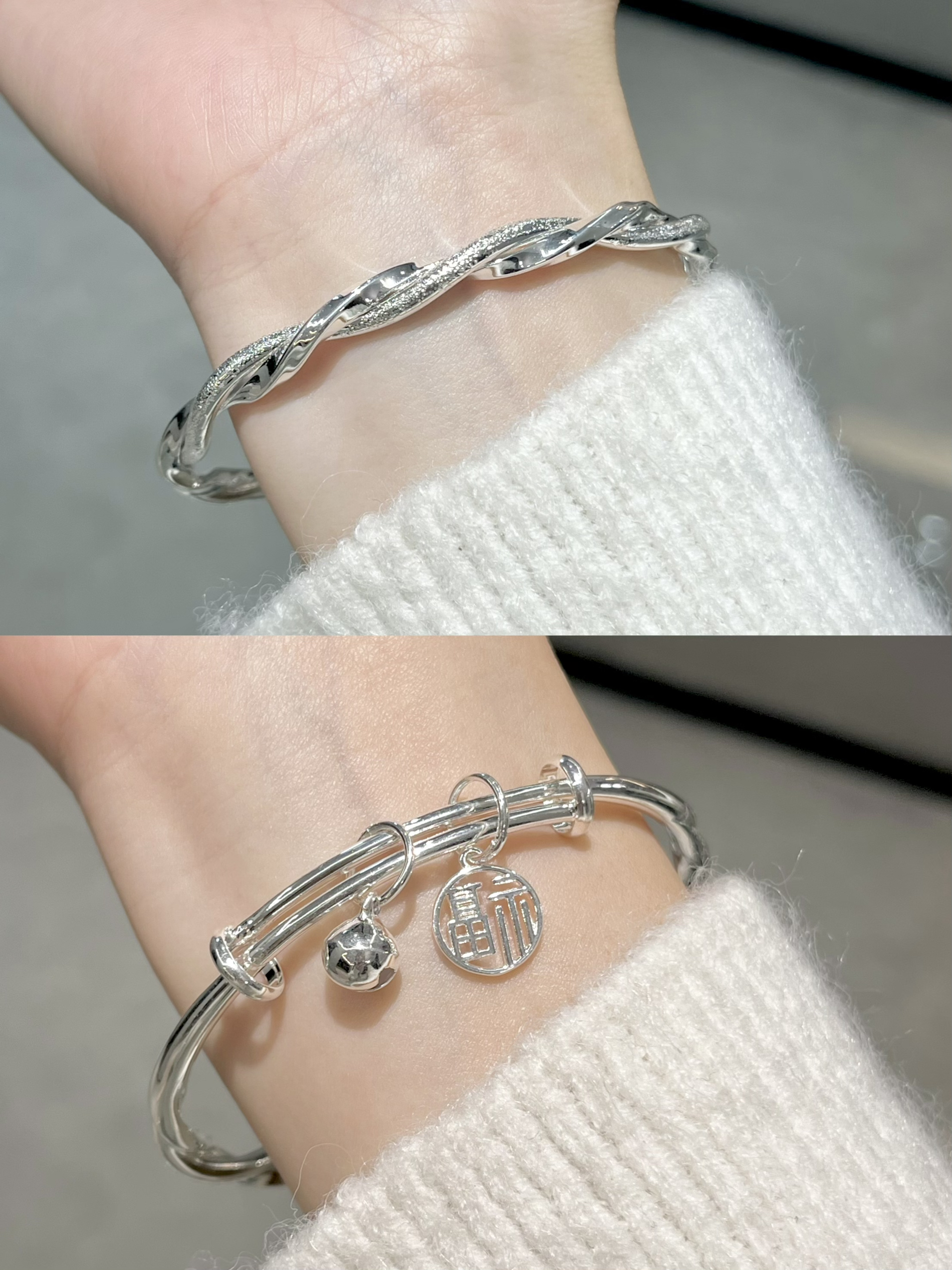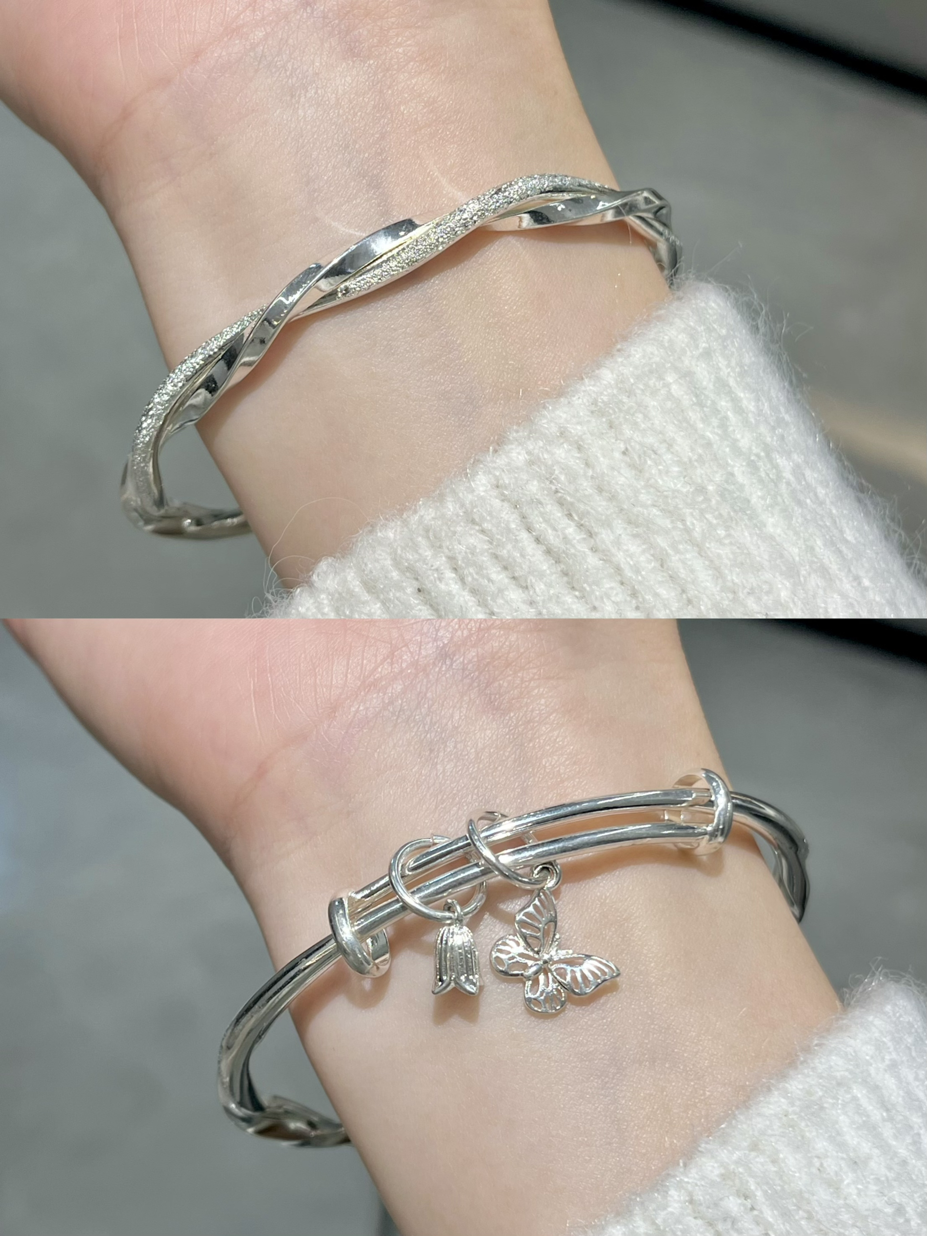 小时候对银镯子的执念具像化了 介几款都是我喜欢的款式 这不春天到了,露手腕的季节当然要把我的银镯子拿出来 我戴着温婉又有气质呢 戴了有段时间了没出现氧化情况 我觉得日常用来叠戴敲美 母亲节送妈妈也是个不错的选择哦