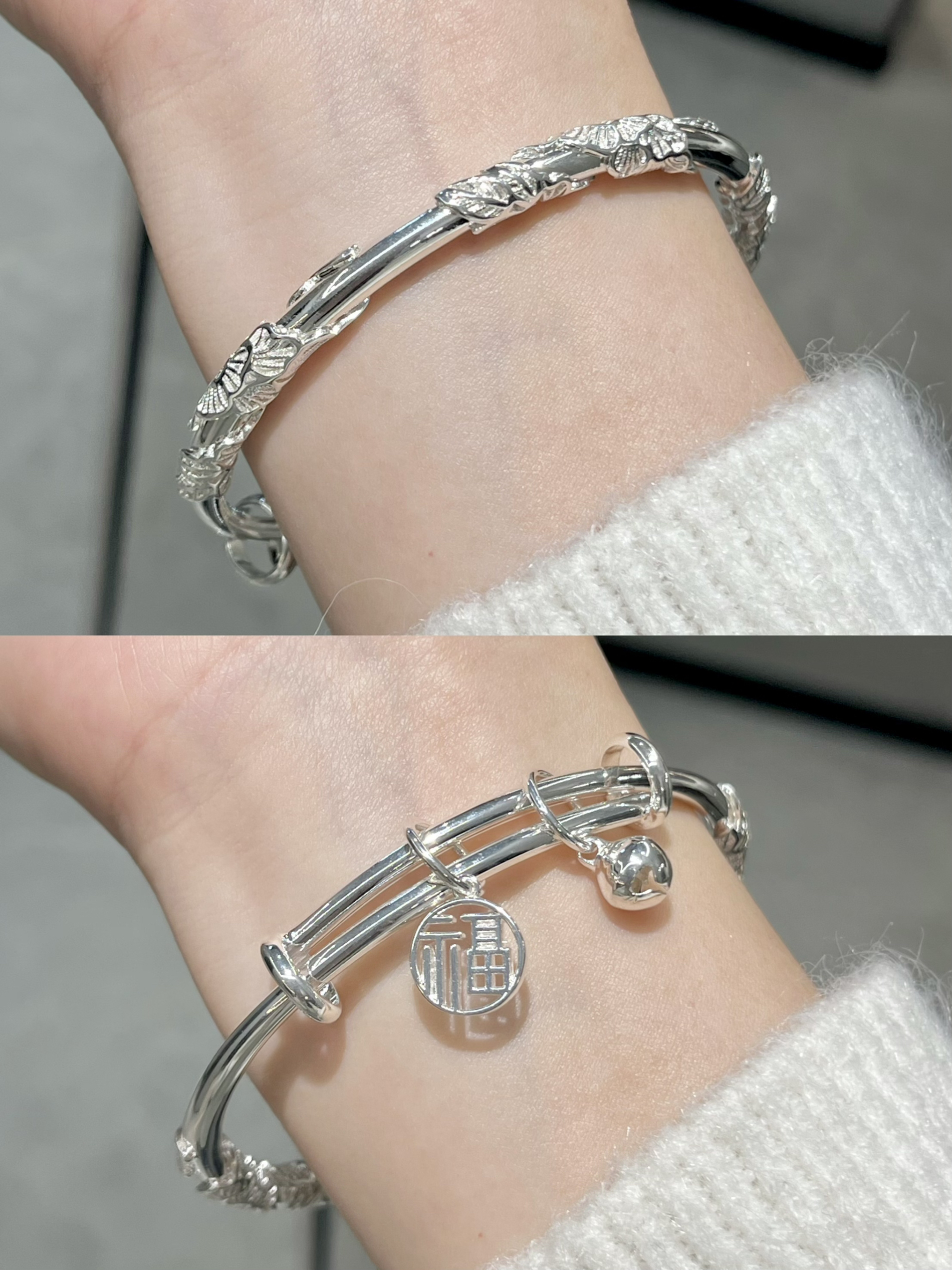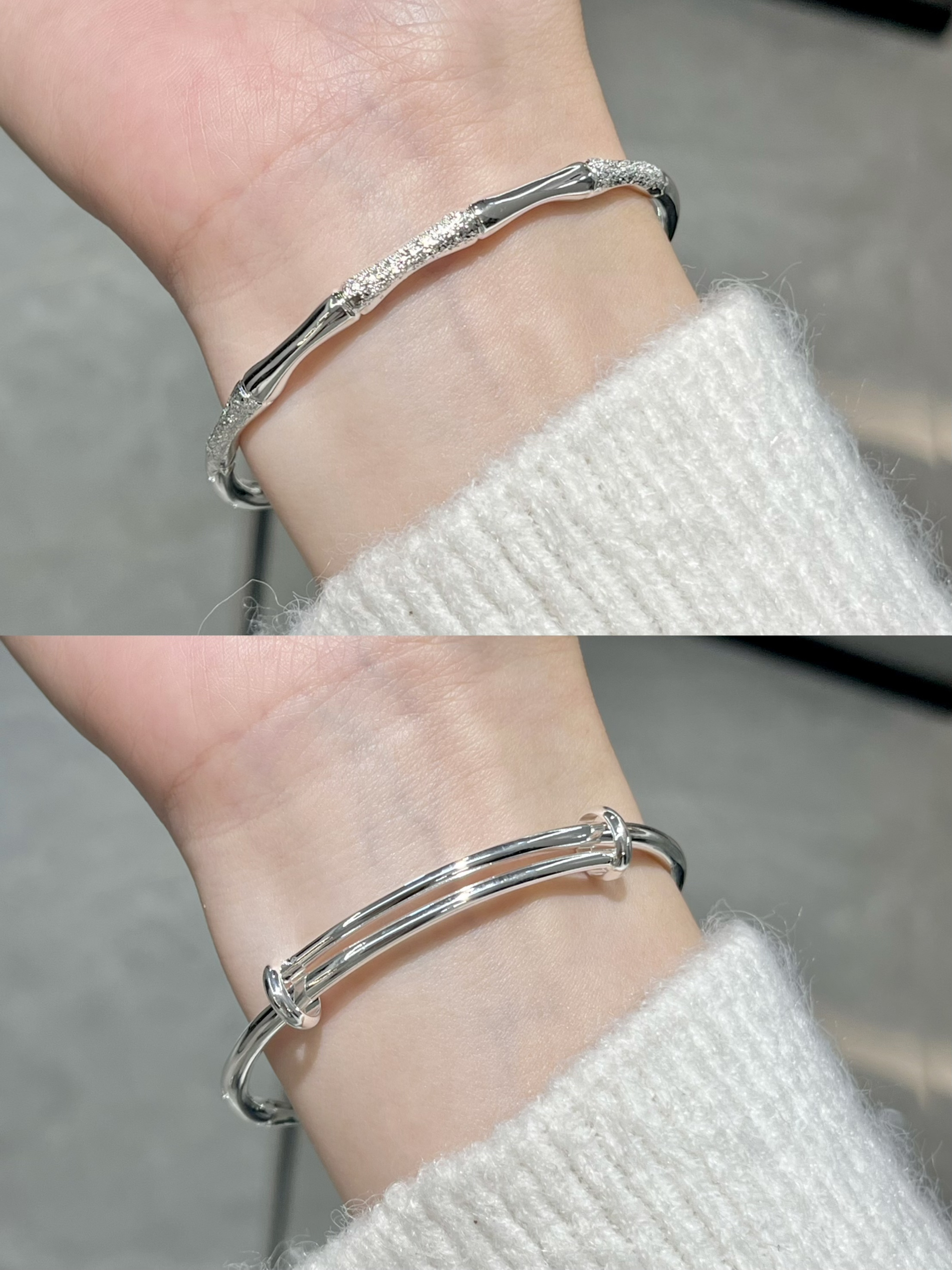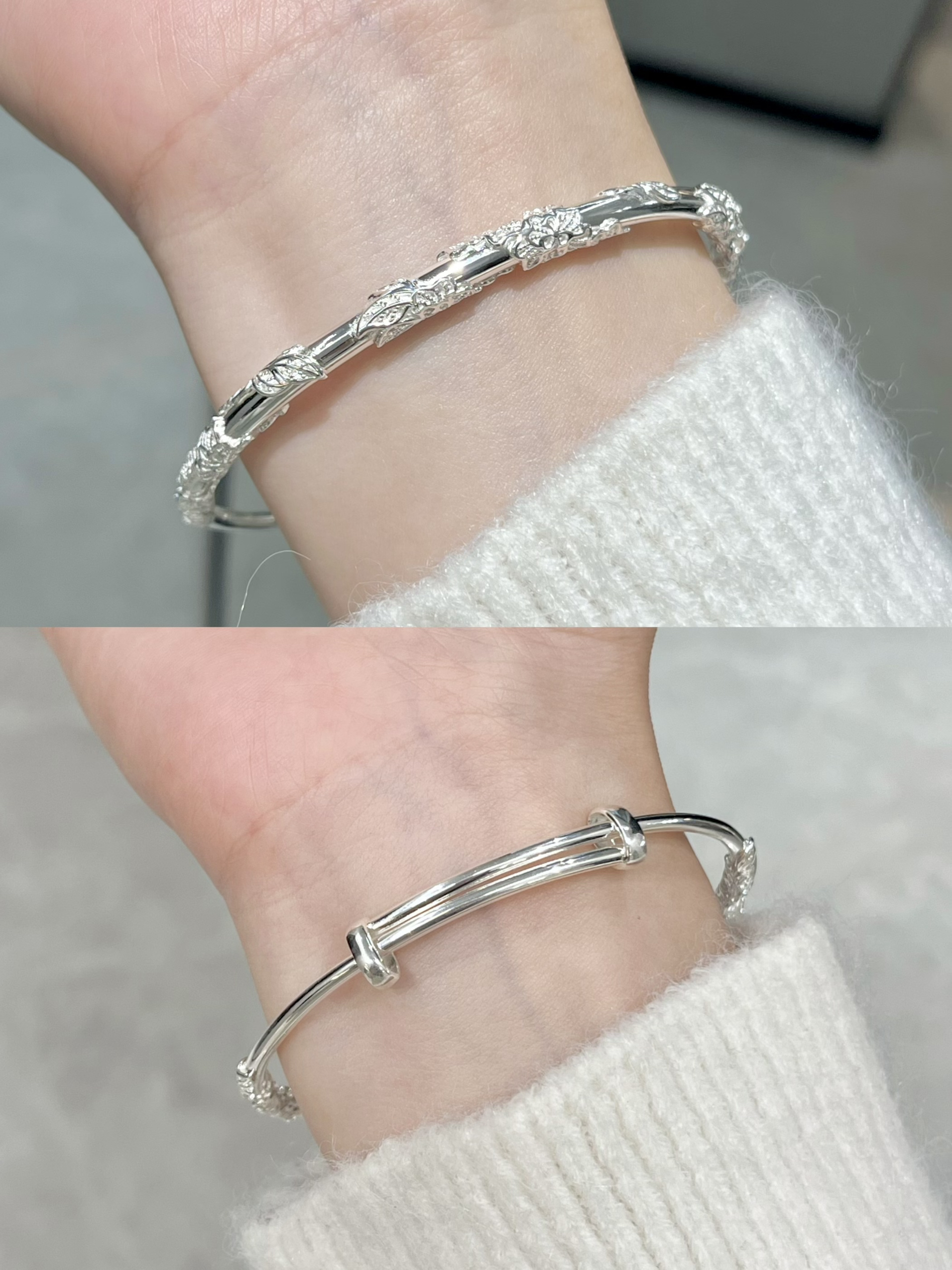 小时候对银镯子的执念具像化了 介几款都是我喜欢的款式 这不春天到了,露手腕的季节当然要把我的银镯子拿出来 我戴着温婉又有气质呢 戴了有段时间了没出现氧化情况 我觉得日常用来叠戴敲美 母亲节送妈妈也是个不错的选择哦