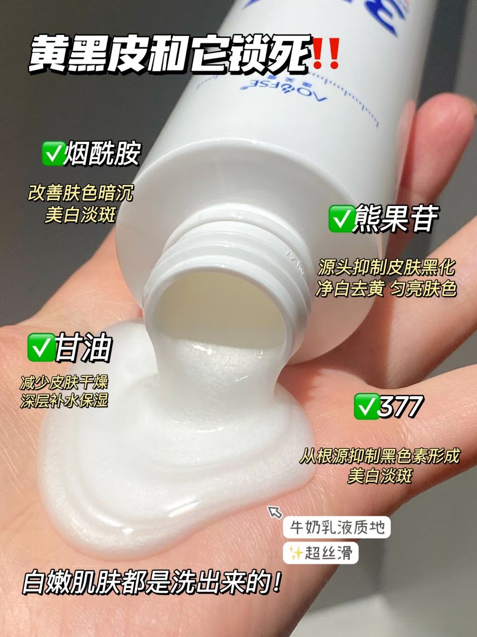🎈想变白,先去黄!跟着我这样洗脸,变成牛奶肌指日可待~ 🎈澳芙雪377美白洁面乳,377、熊果苷、烟酰胺三大白白成分~ 🎈就是要给皮肤越洗越透亮!价格巨便宜而且成分很温和,黄皮姐妹答应我一定要入手试试!