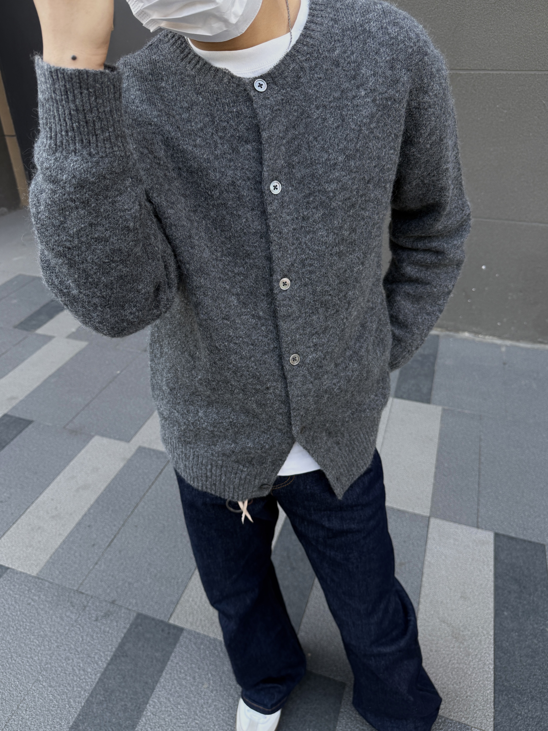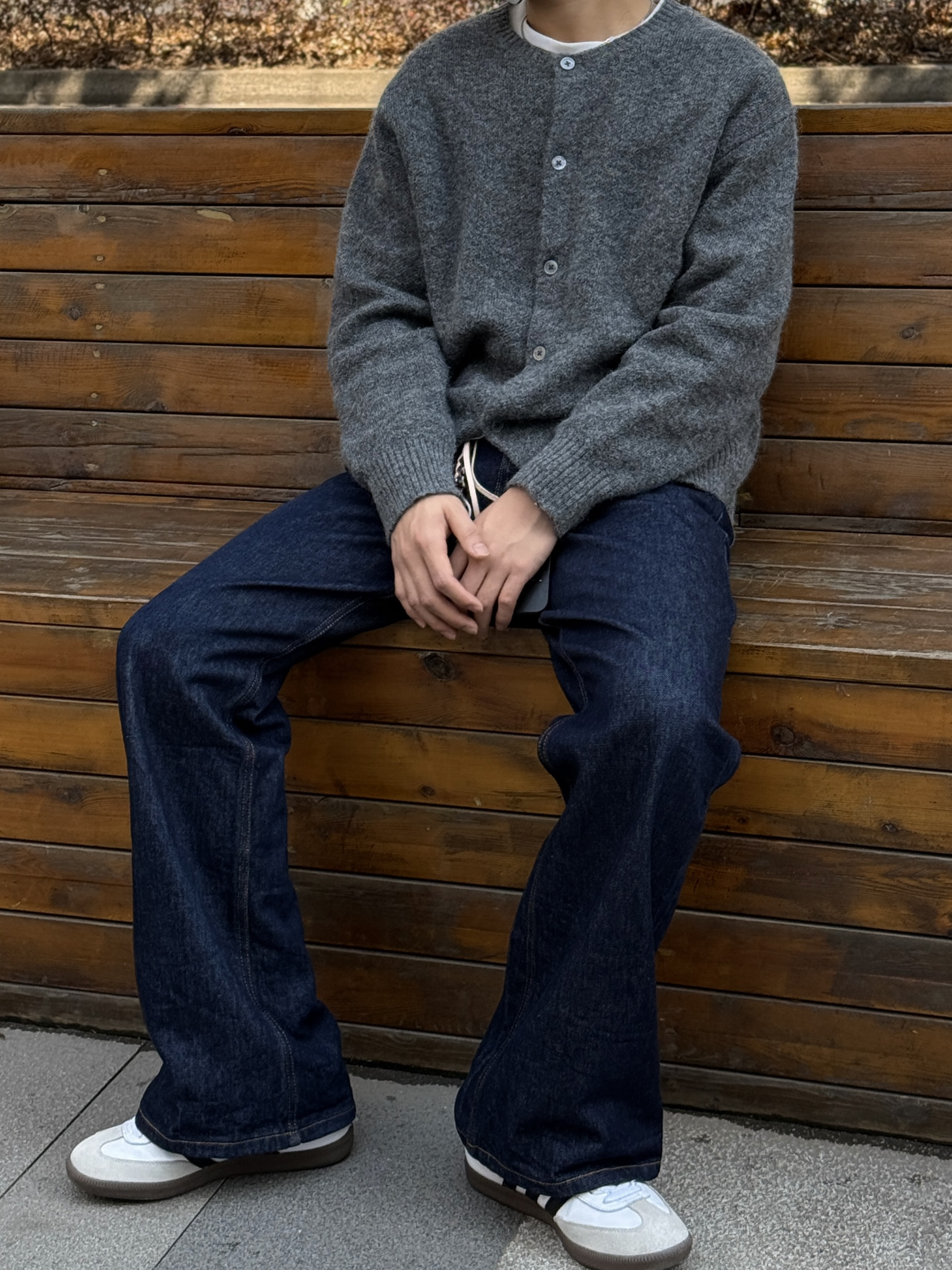 上衣:UR圆领针织开衫软糯针织肌理自带慵懒氛围,优化比例,显瘦不拖沓 裤子:原色直筒牛仔裤质感拉满,版型非常好,很立体! 鞋子:百搭的德训鞋