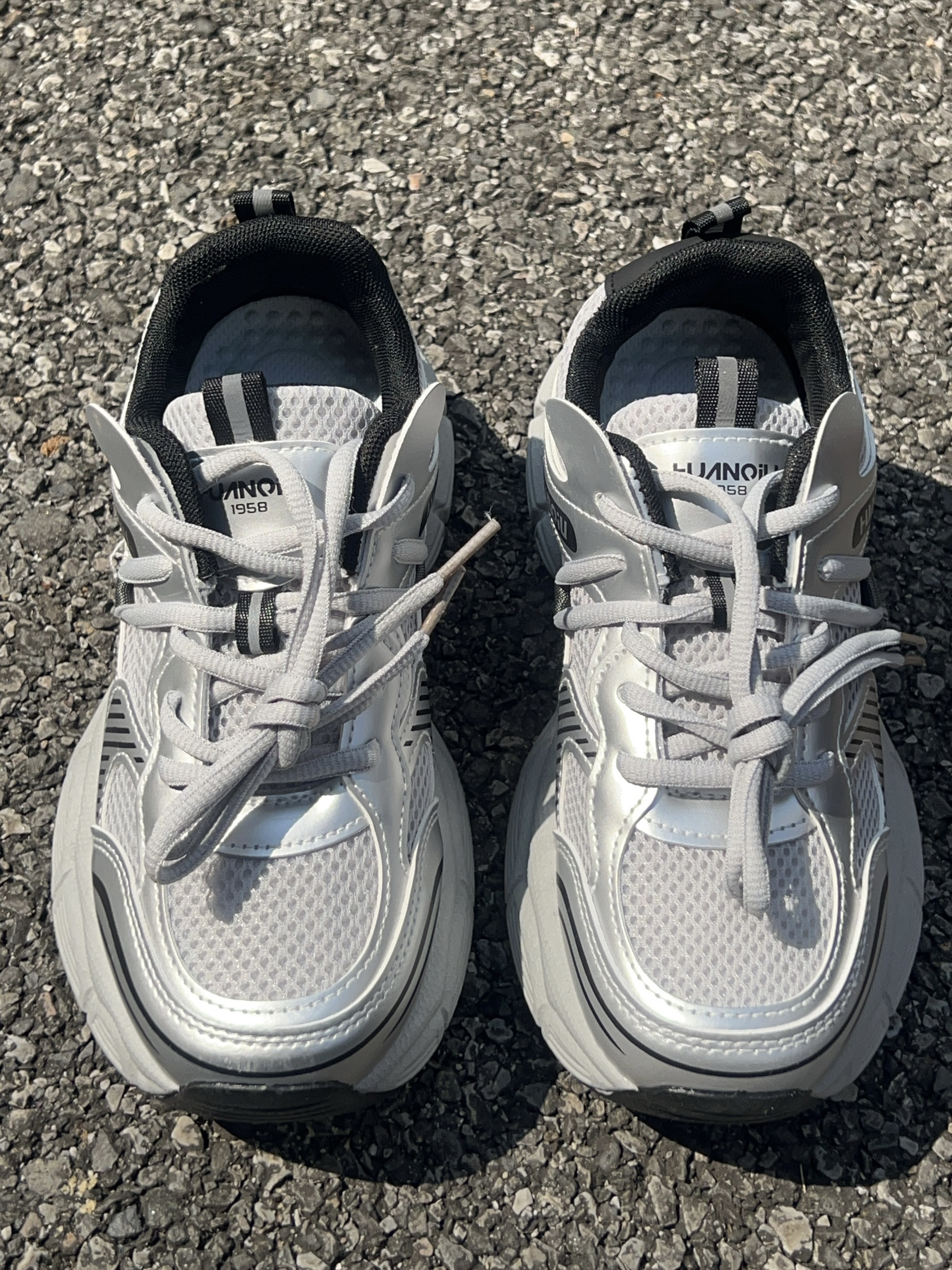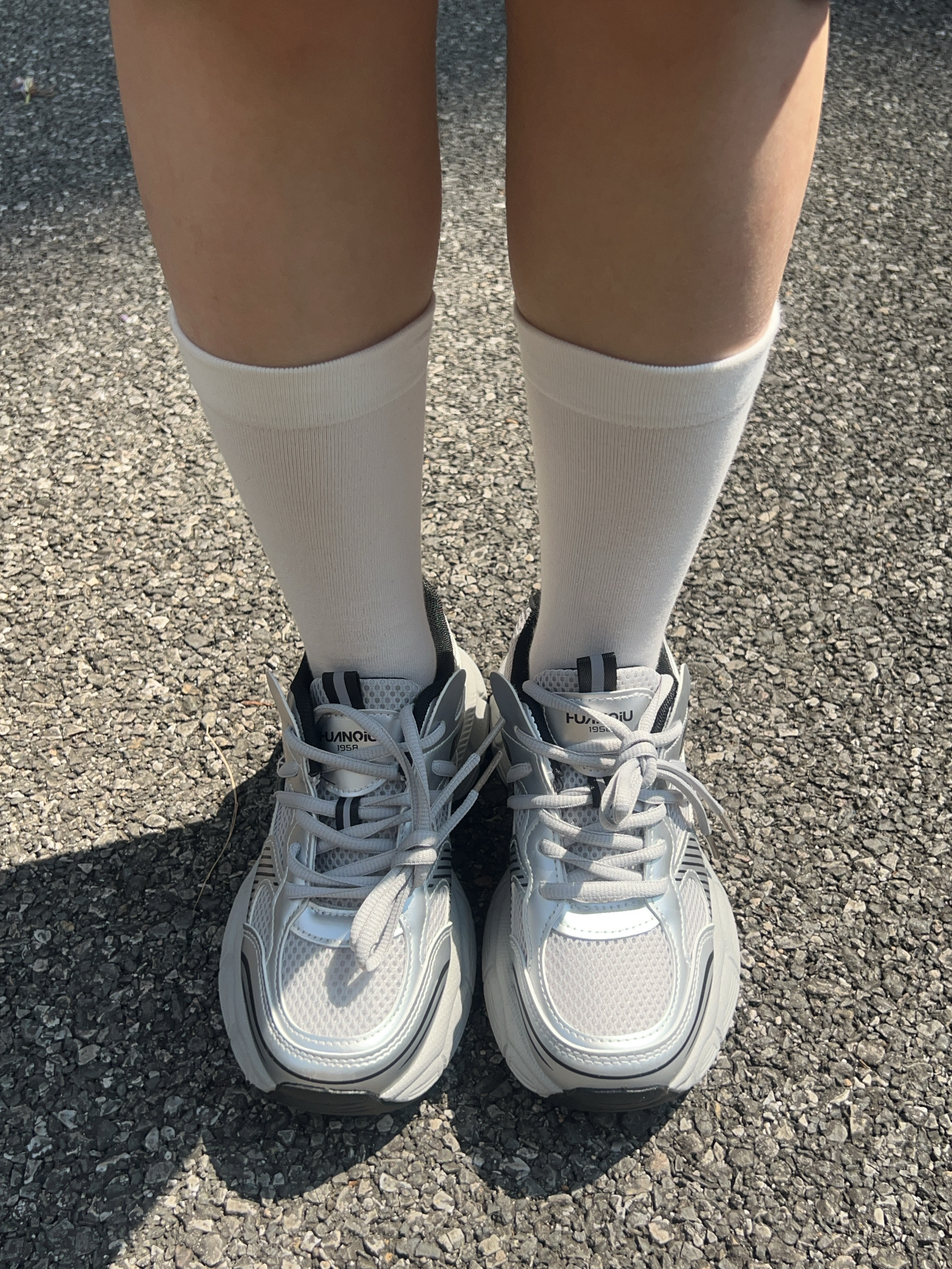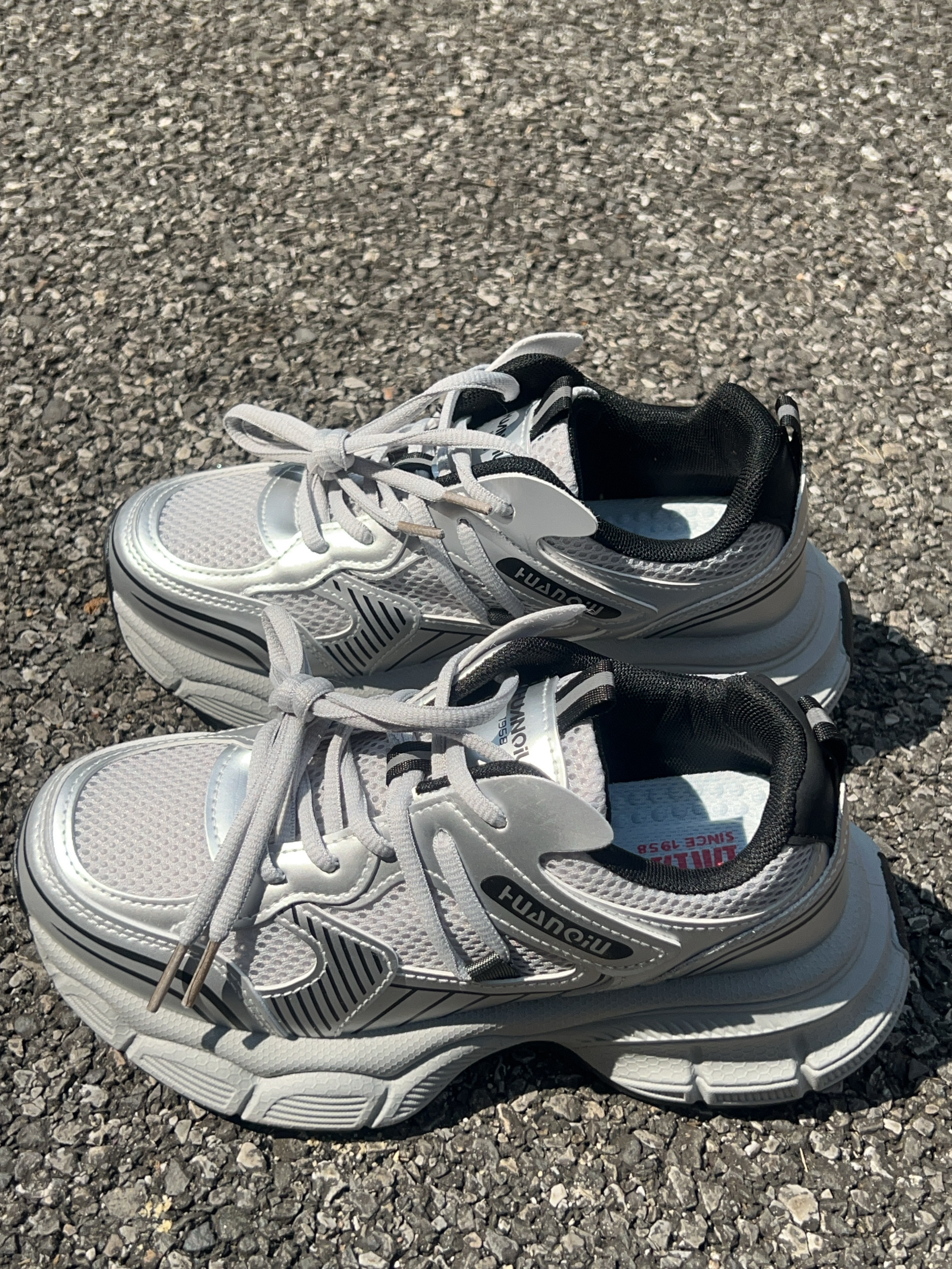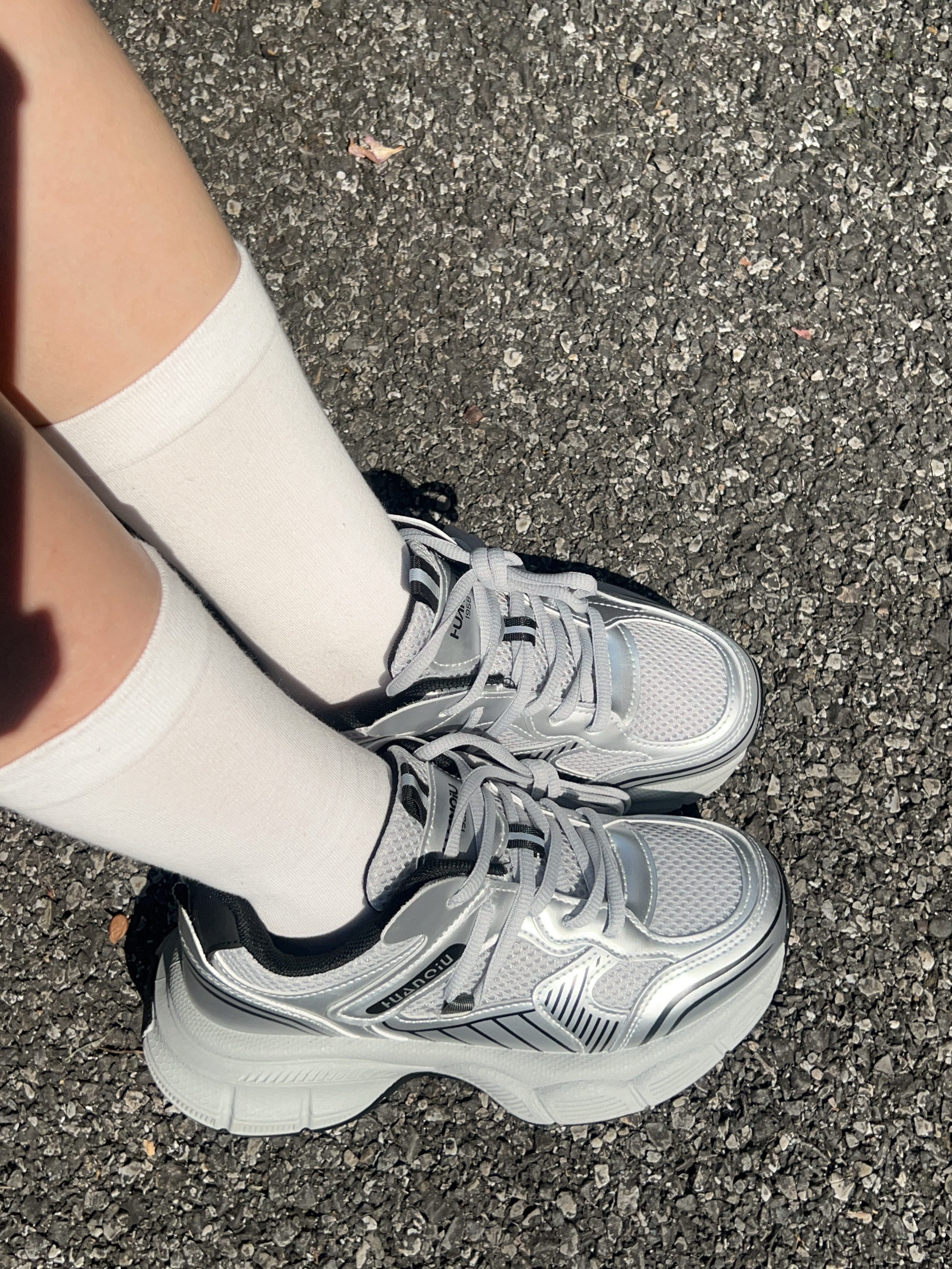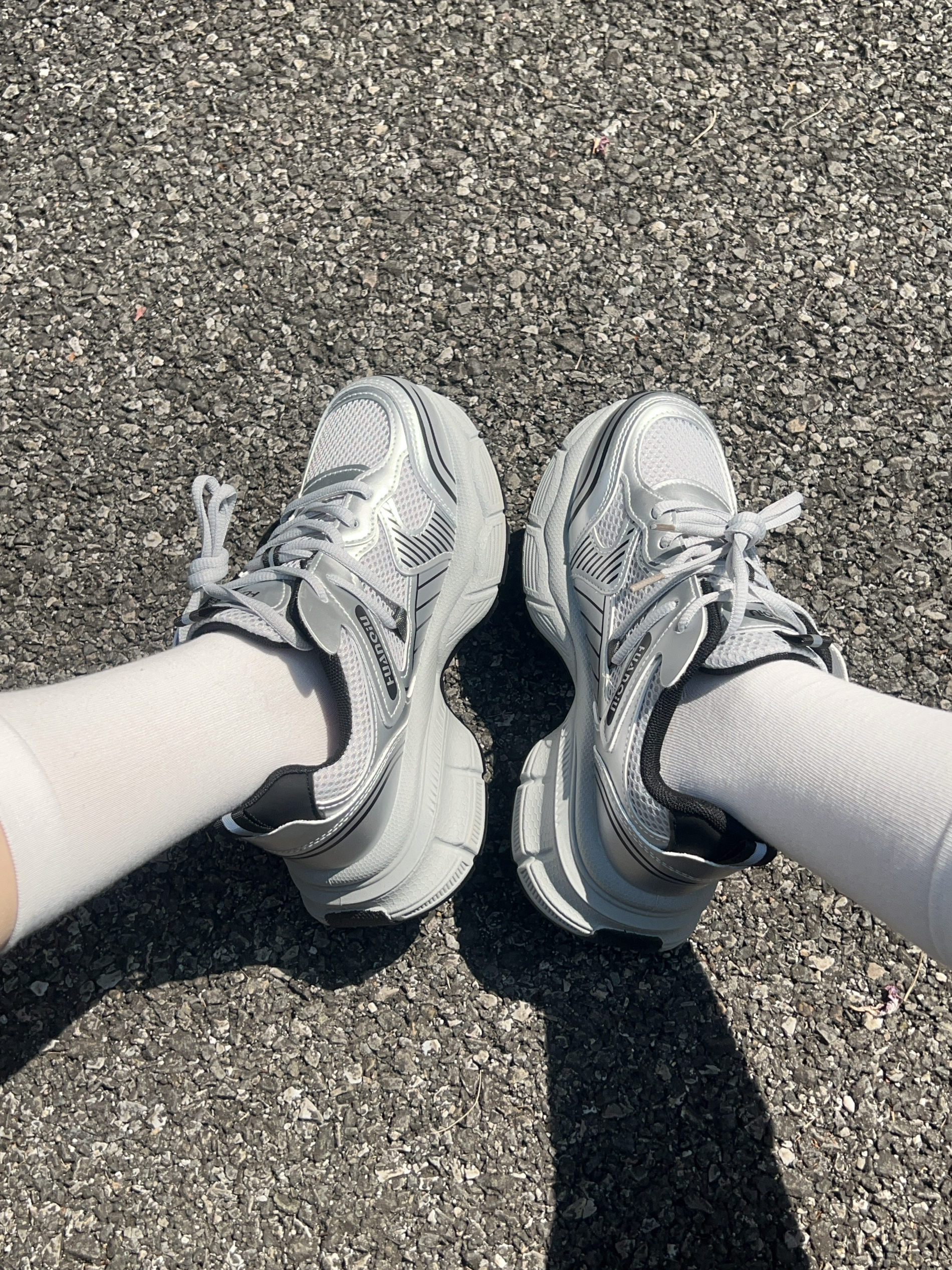广东这个时候天气蛮好的 不冷不热正适合春游玩耍 这款老爹鞋银色配色好好看 上脚穿舒适 鞋底防滑耐磨的 厚底的走久也不觉得累jio 码数合适 随便搭牛仔裤休闲裤都可