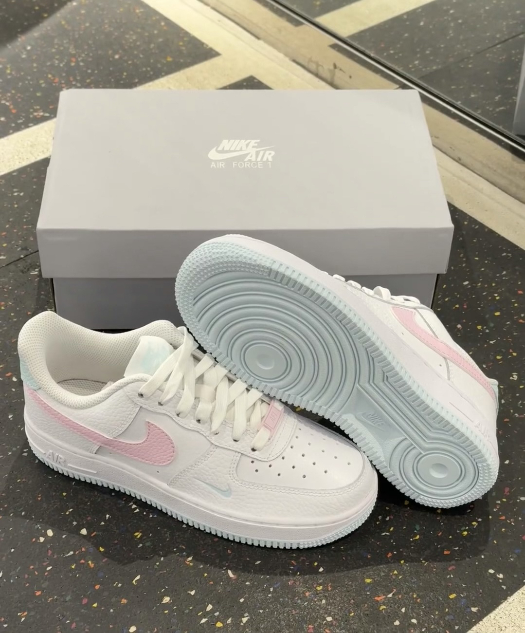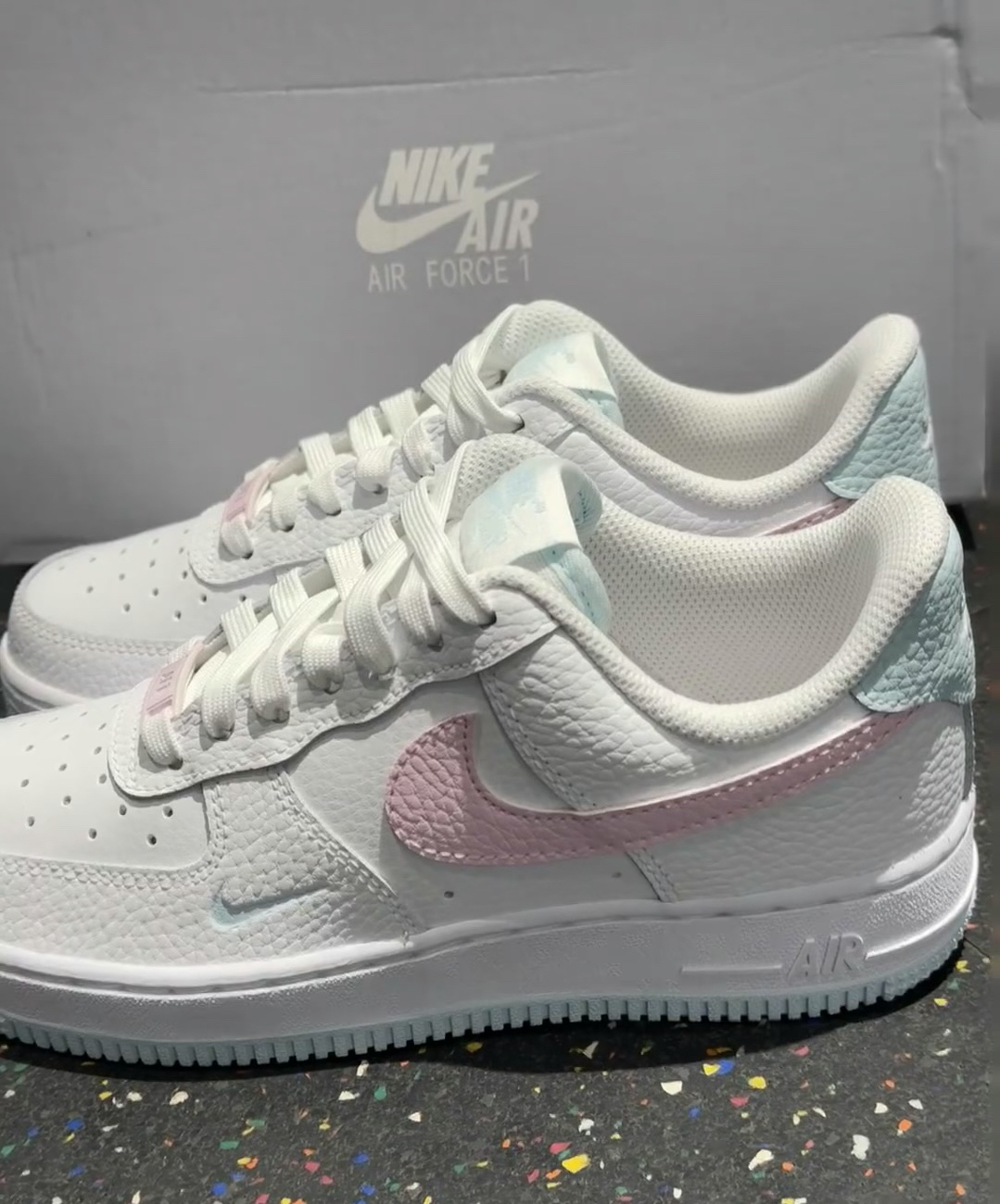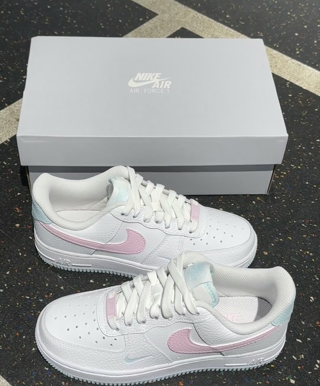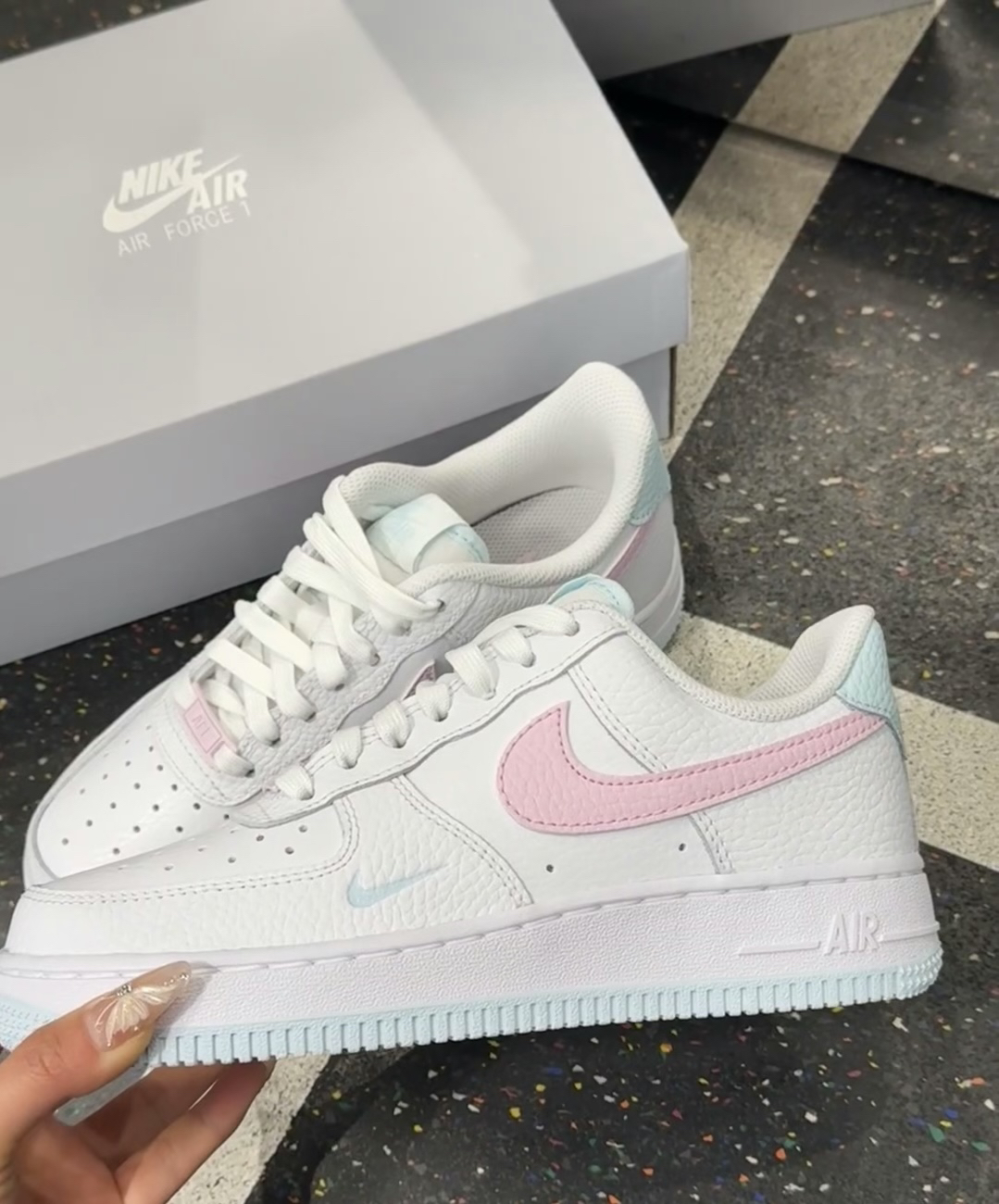 马卡龙配色空军 天蓝底配上粉色勾 少女心满满啊~~