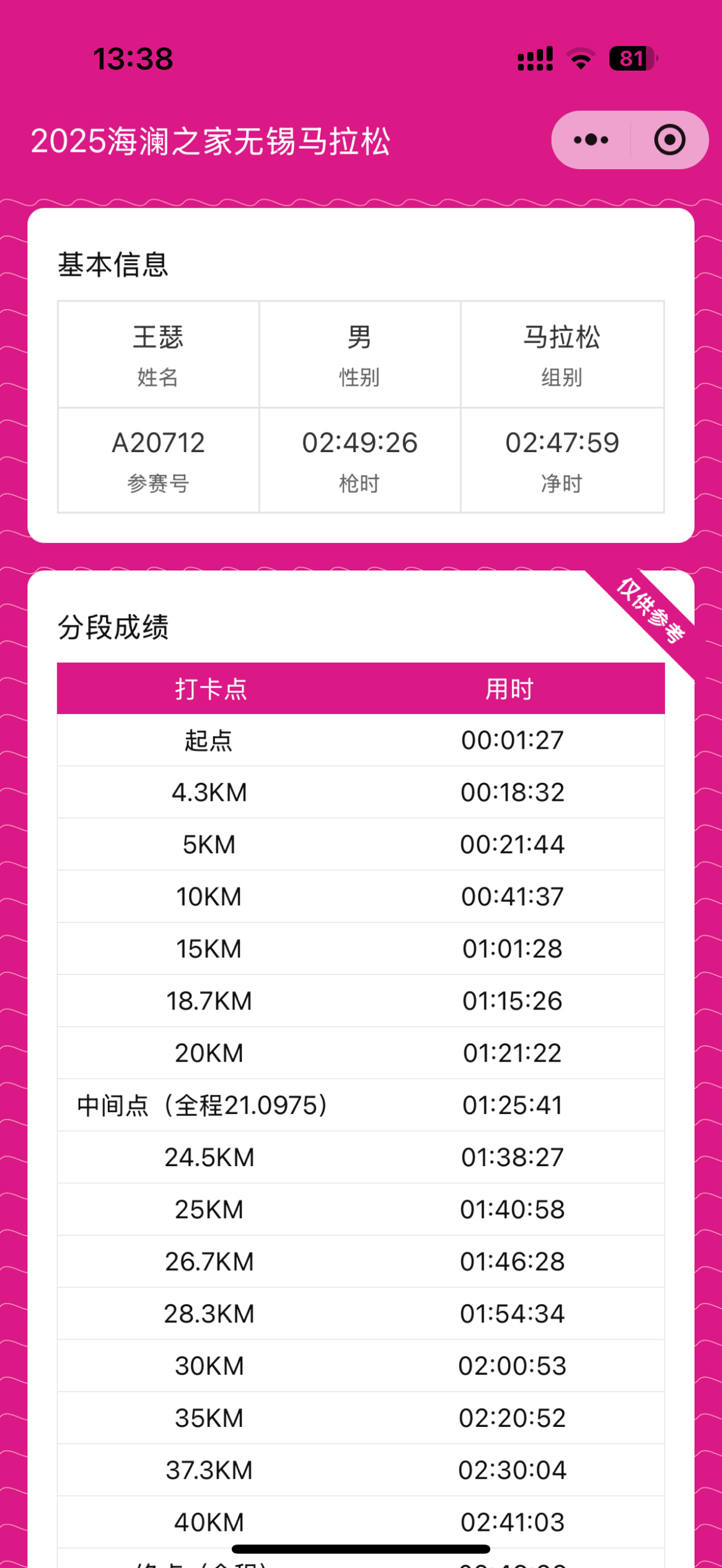 赛前就知道会热,但这场可能是上半年最后一场适合冲击成绩的比赛。 天气我们没得选择,只能想办法去应对。 每过一个补给站,都往头上和背后浇水,利用蒸发带走热量。 流汗非常多,几乎每个站点都补水。 电解质流失也多,吸取东京马拉松的教训,这场带的是 GU胶,含盐量高,每吃一根胶相当于额外吃一颗盐丸,再加上两根迈胜电解质PRO,才稳住了电解质平衡。 作为京东戴表团团长参赛,联合京东给 100 位锡马跑者送了...