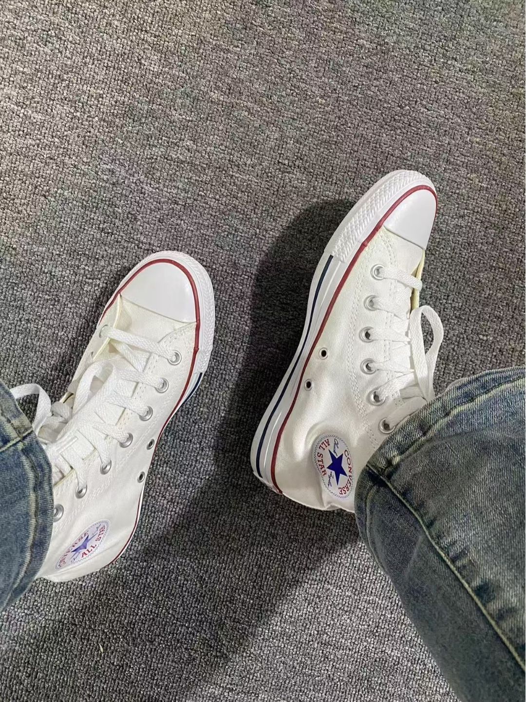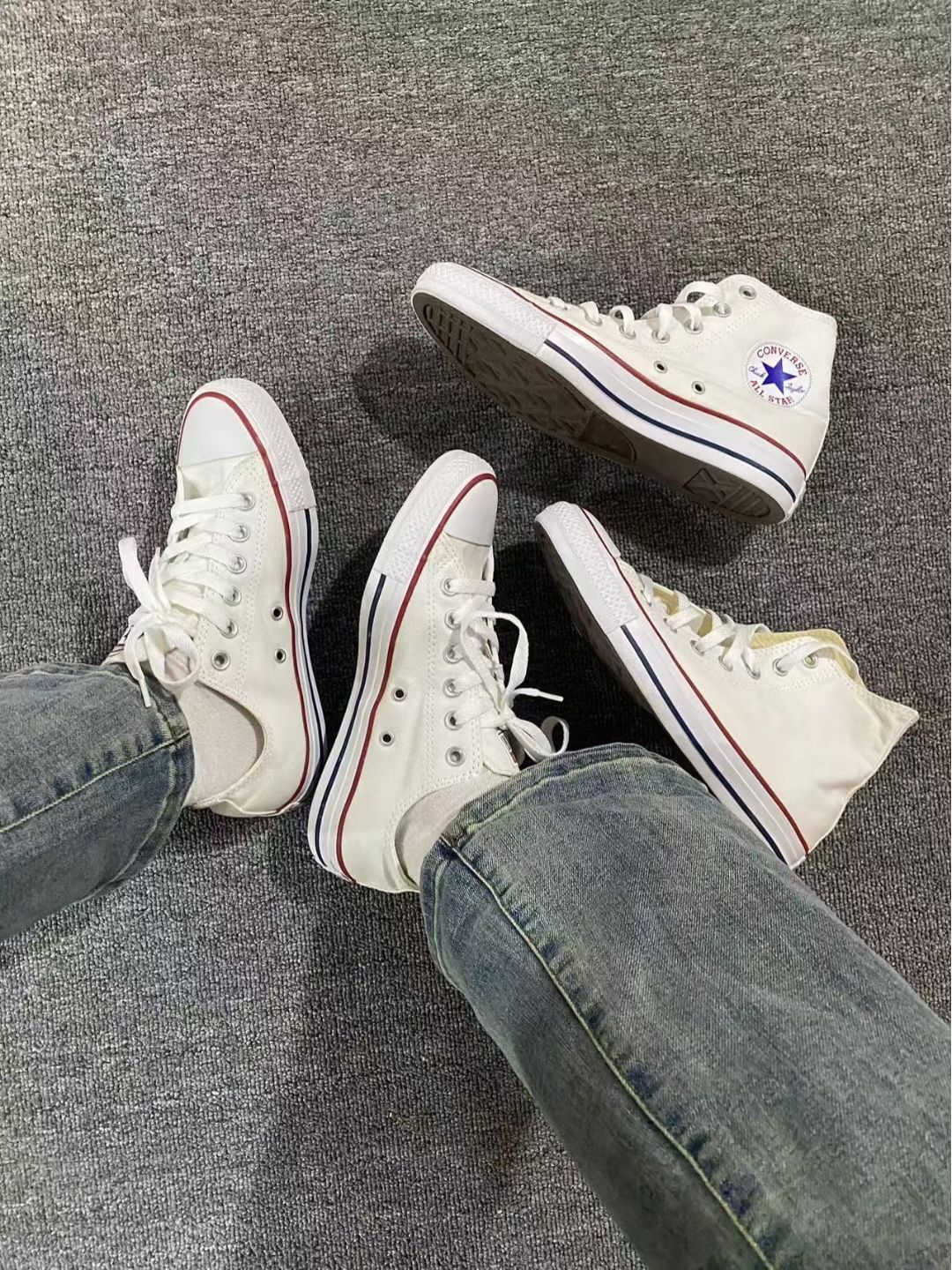 想看看大家是怎么搭配匡威小白鞋的 一直特别喜欢白色高帮匡威 终于薅羊毛了 想看看大家是怎么搭配的🛒好物名称: