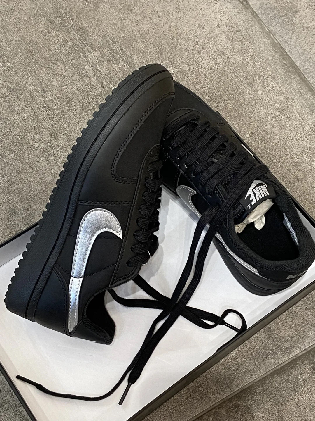 经典黑色鞋面酷感十足, 简约又百搭,适配各种风格的衣服。不管是休闲裤、牛仔裤,还是运动裤,它都能轻松拿捏,让你出门不用为搭配发愁。 鞋身材质质感满满,耐穿又抗造。穿着它压马路,脚感舒适,仿佛踩在云朵上。细节处的银色点缀,更是为整体增添了一丝亮点,让你在人群中脱颖而出。 这双板鞋,无论是日常出行,还是运动健身都很合适,性价比超高!友友们快冲,把时尚与舒适一并带回家~ #耐克板鞋[话题]# #时尚穿搭...