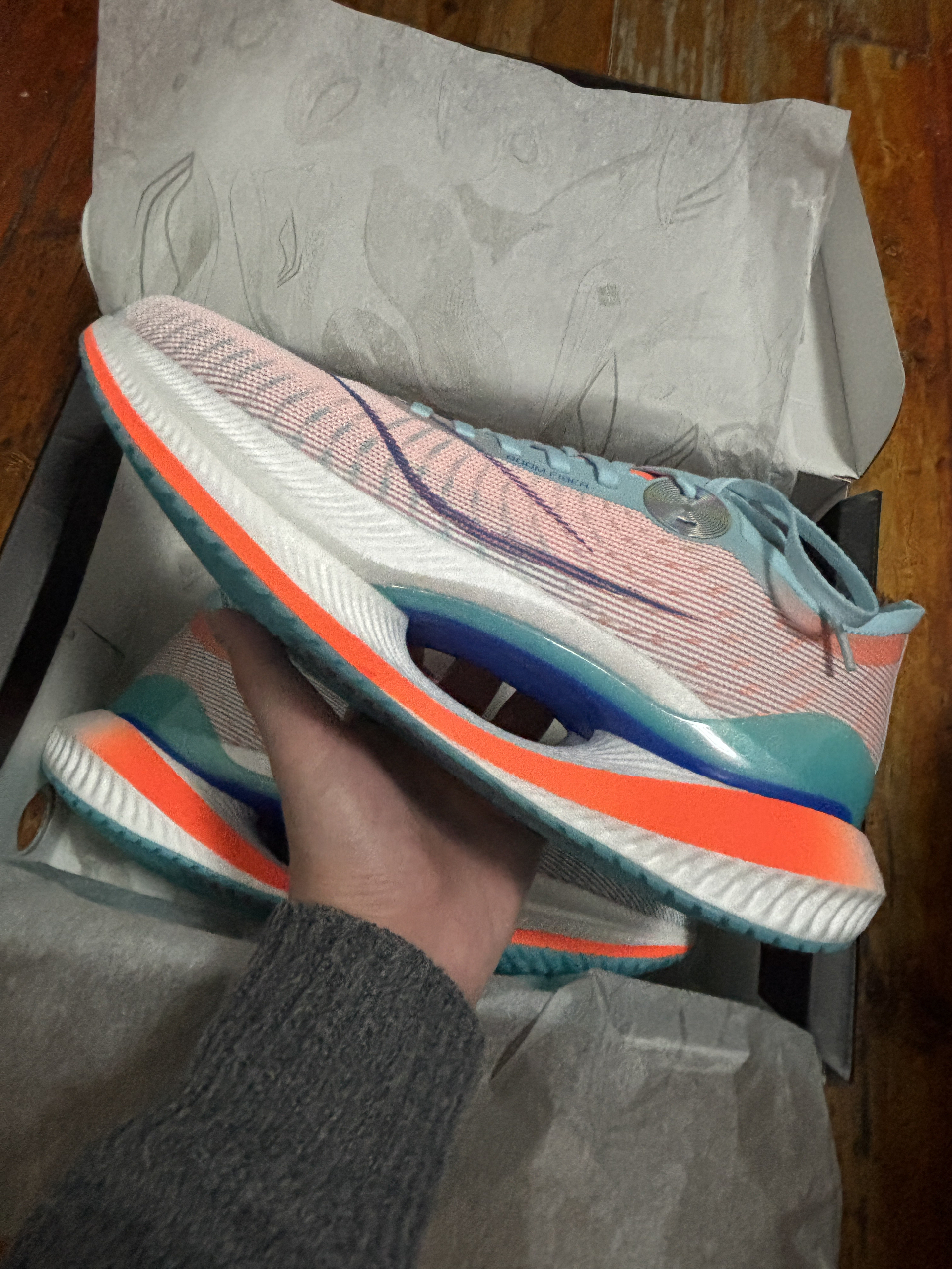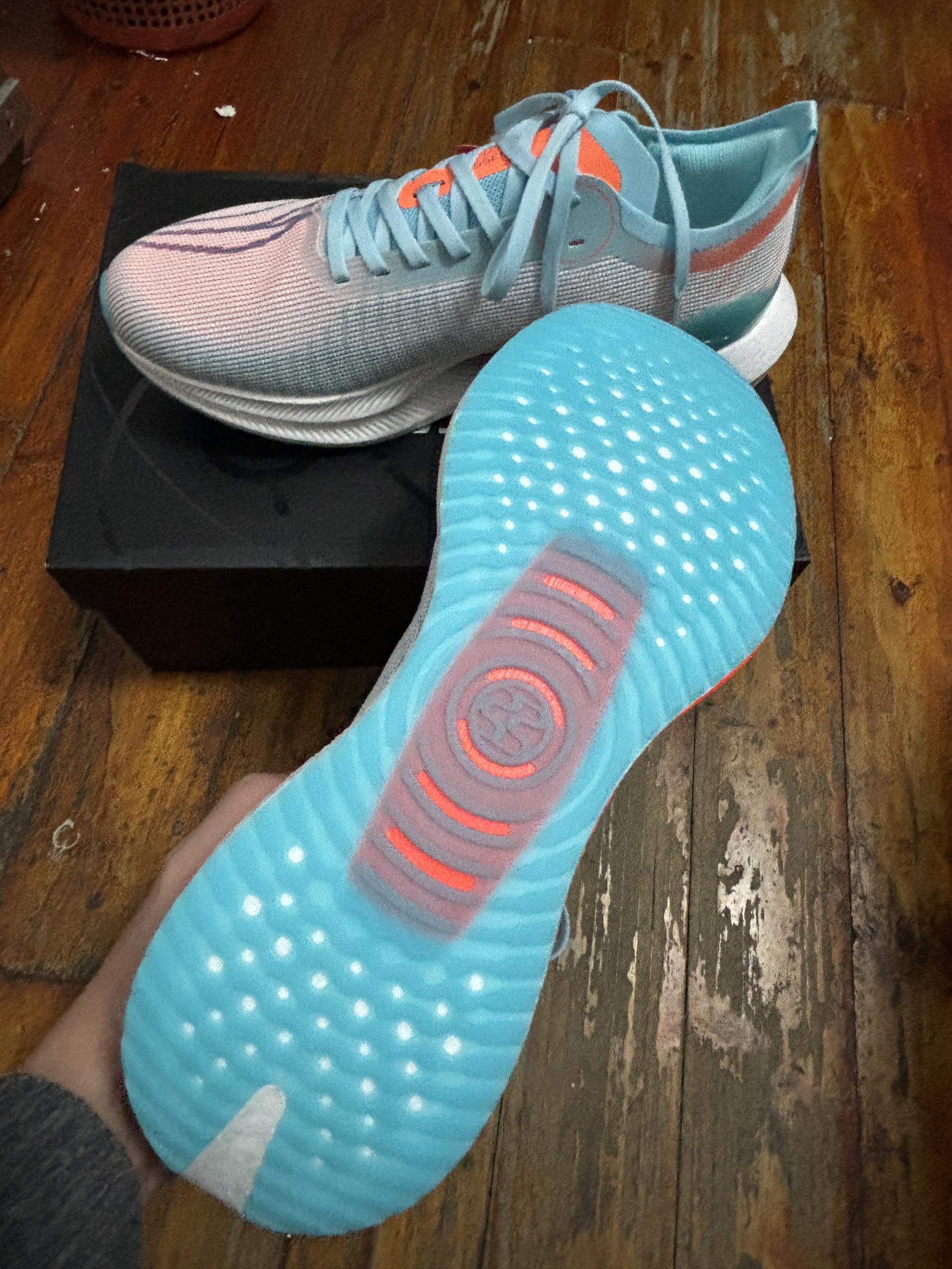 穿上它直接体验「踩棉花+蹦床」双重快乐,日常通勤都能走出T台气场! **1. 颜值暴击:浅腊蓝配色直接封神!** 这颜色绝了!清爽又带点未来感,鞋底那个星轨镂空设计像把银河踩在脚下(设计师怕不是偷看了科幻片吧)!鞋面䨻丝材质透得像会呼吸,夏天穿jio再也不闷汗,跑步自带空调buff~ **2. 黑科技叠满,jio感开挂!** 双层䨻中底+弜科技,脚一踩下去Q弹到上头!官方说回弹提升25...