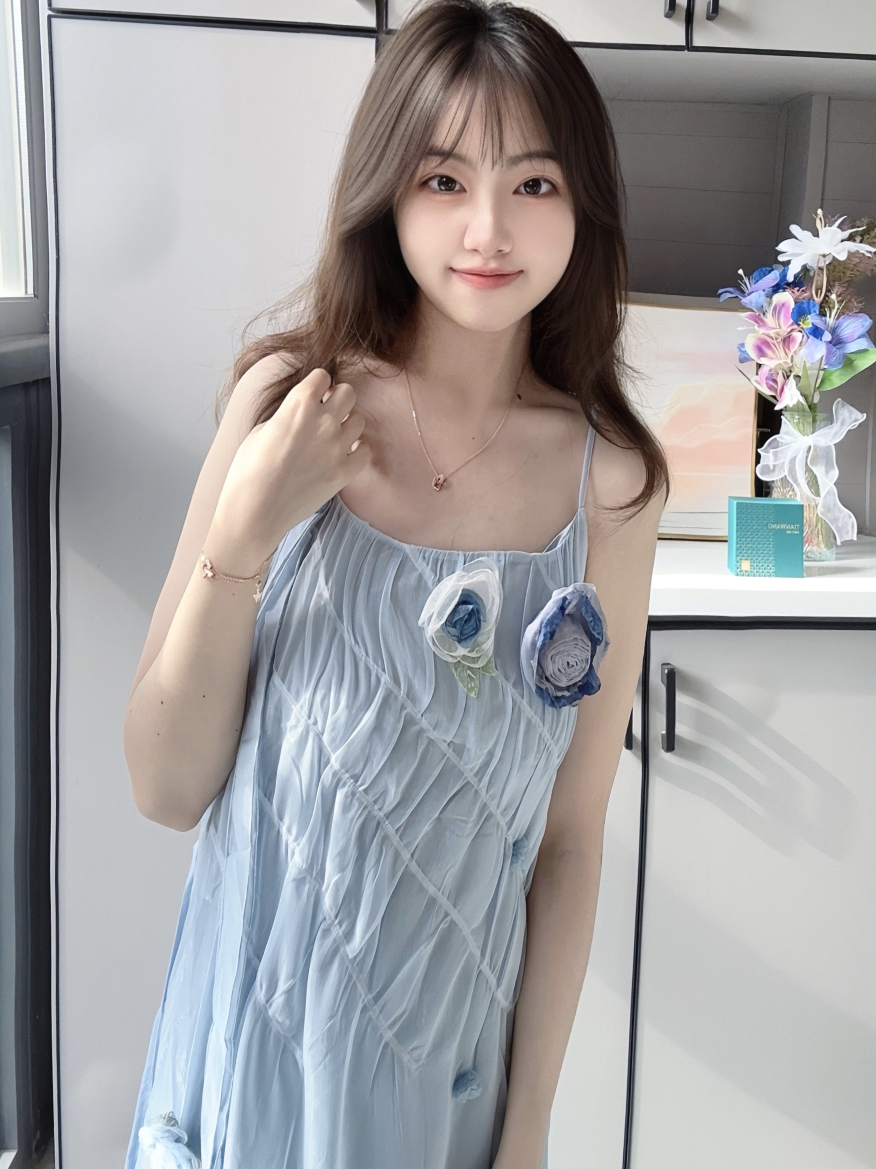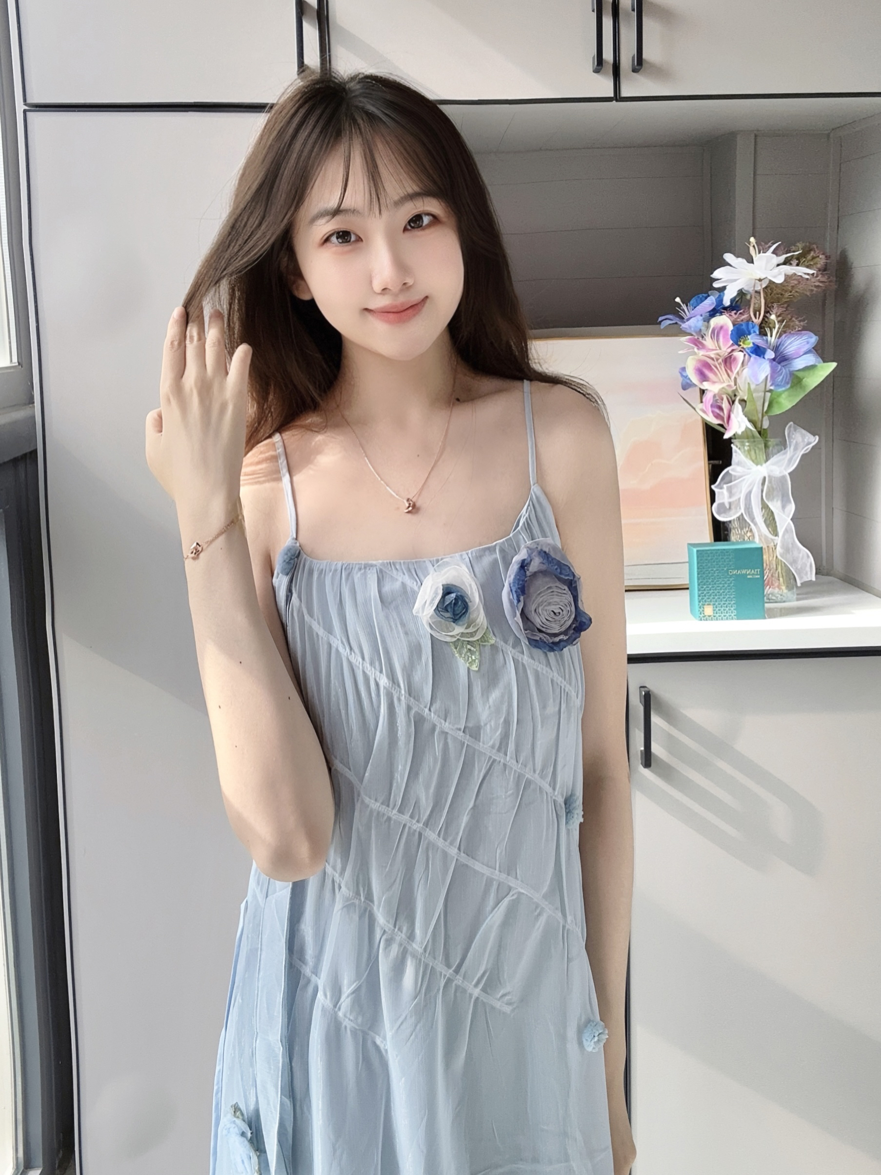 是小时候想成为的温柔姐姐 户外出门穿淡蓝色长裙显白又显瘦 搭配好看的首饰增加了精致感