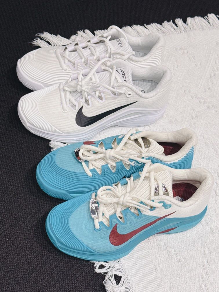 🎾 薄荷气泡水配色暴击!液态氮加速中底+防滑矩阵大底 横向急停像踩磁悬浮轨道 底线抽击自带弹簧装置音效 🌀 蜂窝透气网眼疯狂造氧 40℃高温解锁 (对手盯着我鞋愣神) 你这鞋...偷装了郑钦文冠军外挂?! 我(转拍亮鞋):错!是Vapor12的薄荷味弹射装置启动啦~