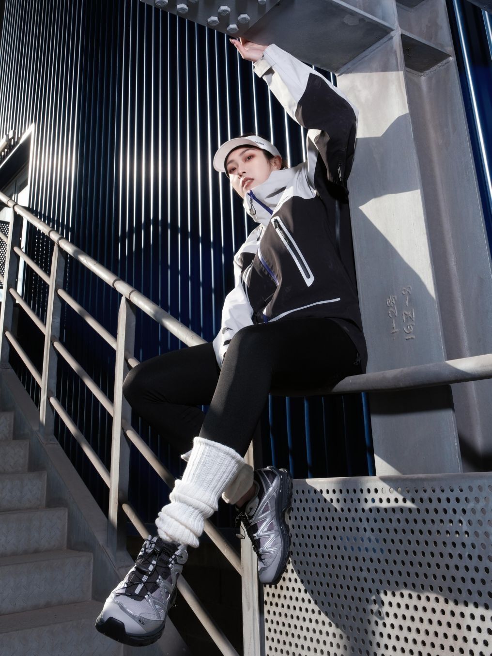 嗯哼~这个季节不出来活动下筋骨怎么对得起这新鲜的空气? 穿上黑灰拼色的冲锋衣 搭配一条黑色的健身裤 马尾干净利落梳起来! 踩着我的新宠萨洛蒙XT-Quest银渐层 黑银配色的Salomon城市街头机能风十足 减震没毛病 防滑耐磨 让我日常穿搭可以帅气 出去爬山可以巴适得奔跑跳跃 今天也就亿点点帅 #SALOMON[话题]##xtquest银渐层[话题]# #XT[话题]#-Quest黑银#银...