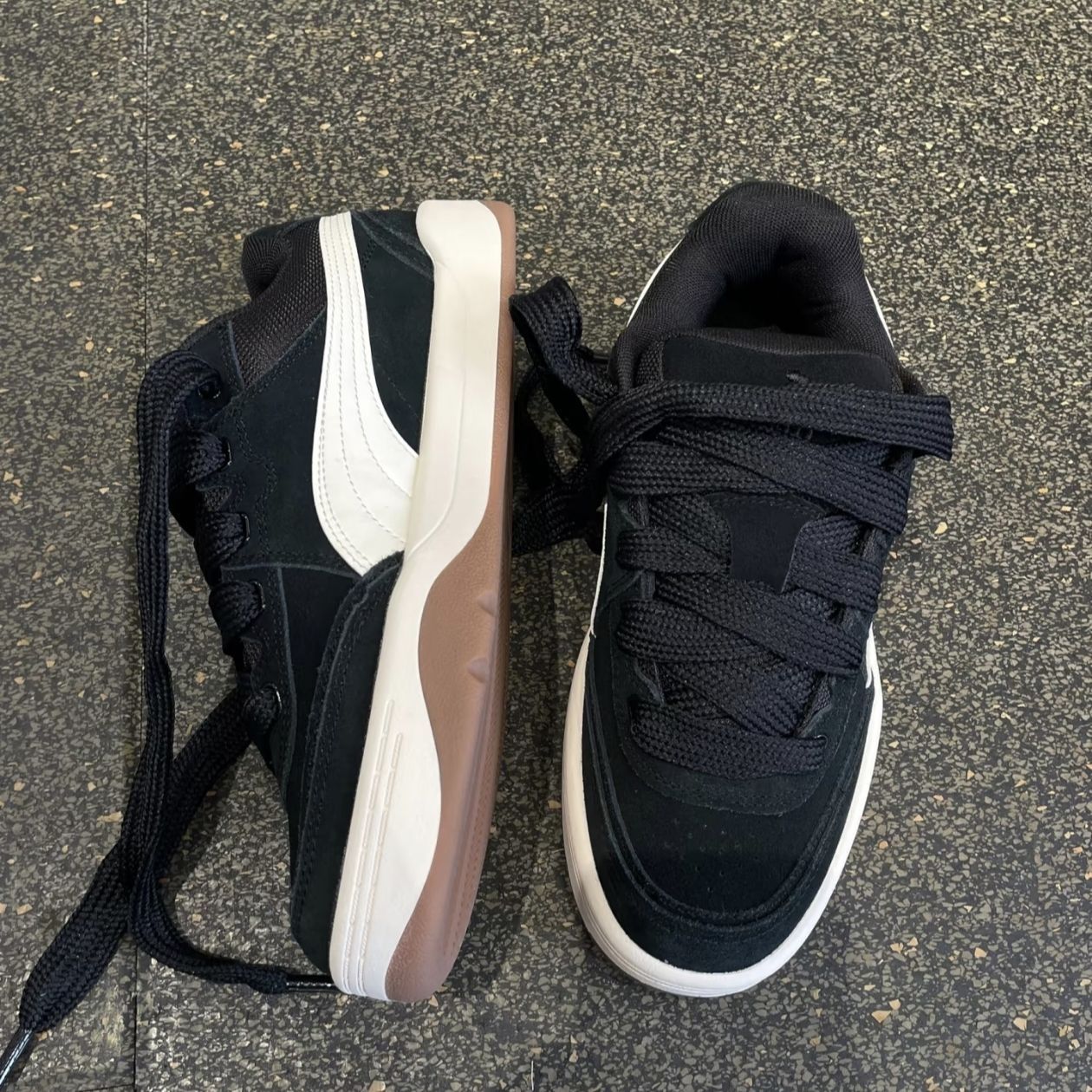 这双彪马板鞋真的太赞了!经典黑白色调,简约又百搭,轻松适配各种风格穿搭。 鞋面材质质感十足,细节处彰显品质。 鞋带设计既保证了贴合度,又增添了时尚感。 鞋底舒适度超高,日常行走、运动都毫无压力。 无论是逛街还是休闲出行,它都是绝佳选择,性价比也超棒,入手不亏!