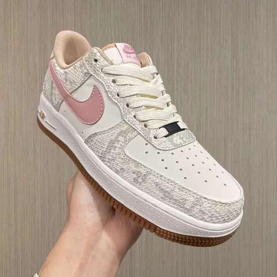 💖设计吸睛:鞋面独特蛇纹元素,搭配温柔粉色Swoosh标志与细节点缀,时尚又个性,完美融合酷感与甜美,出街绝对亮眼,轻松成为焦点。 🧵材质讲究:蛇纹部分质感逼真且有韧性,不易磨损;其他皮革材质柔软细腻,贴合脚部,穿着无束缚感。鞋舌与内衬材质亲肤,减少摩擦,呵护双脚。 👣脚感舒适:经典Air气垫加持,提供强劲缓震,走路时能明显感受到柔软回弹,有效缓解脚部压力,久走不累。鞋底纹路设计合理,抓地力强,行...