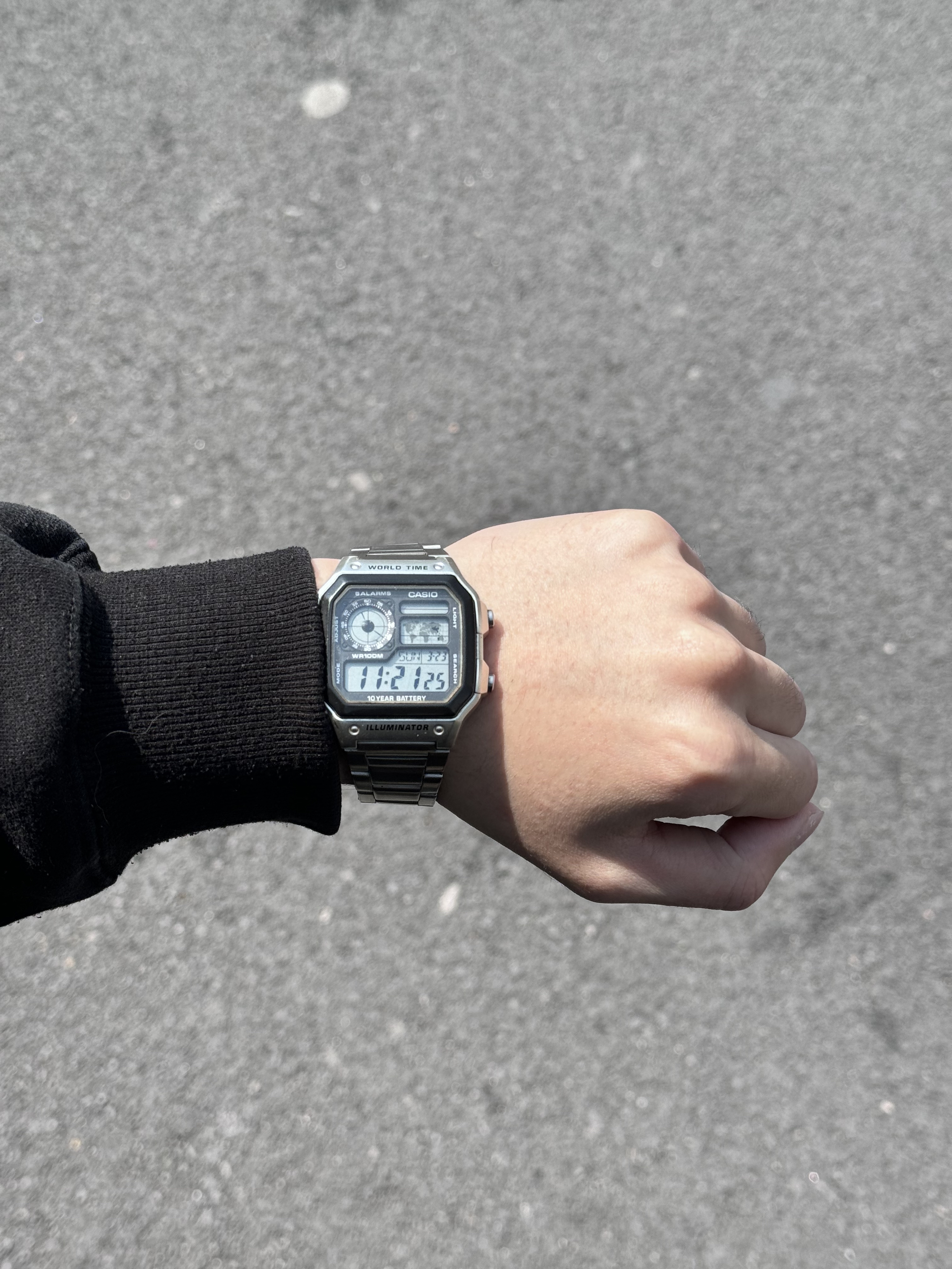 本篇笔记关联了Casio/卡西欧 VINTAGE系列 不锈钢表带高中学生复古银方块防水石英男士手表 银黑色 AE-1200WHD-1A等商品,为用户提供真实的使用体验和购买参考。