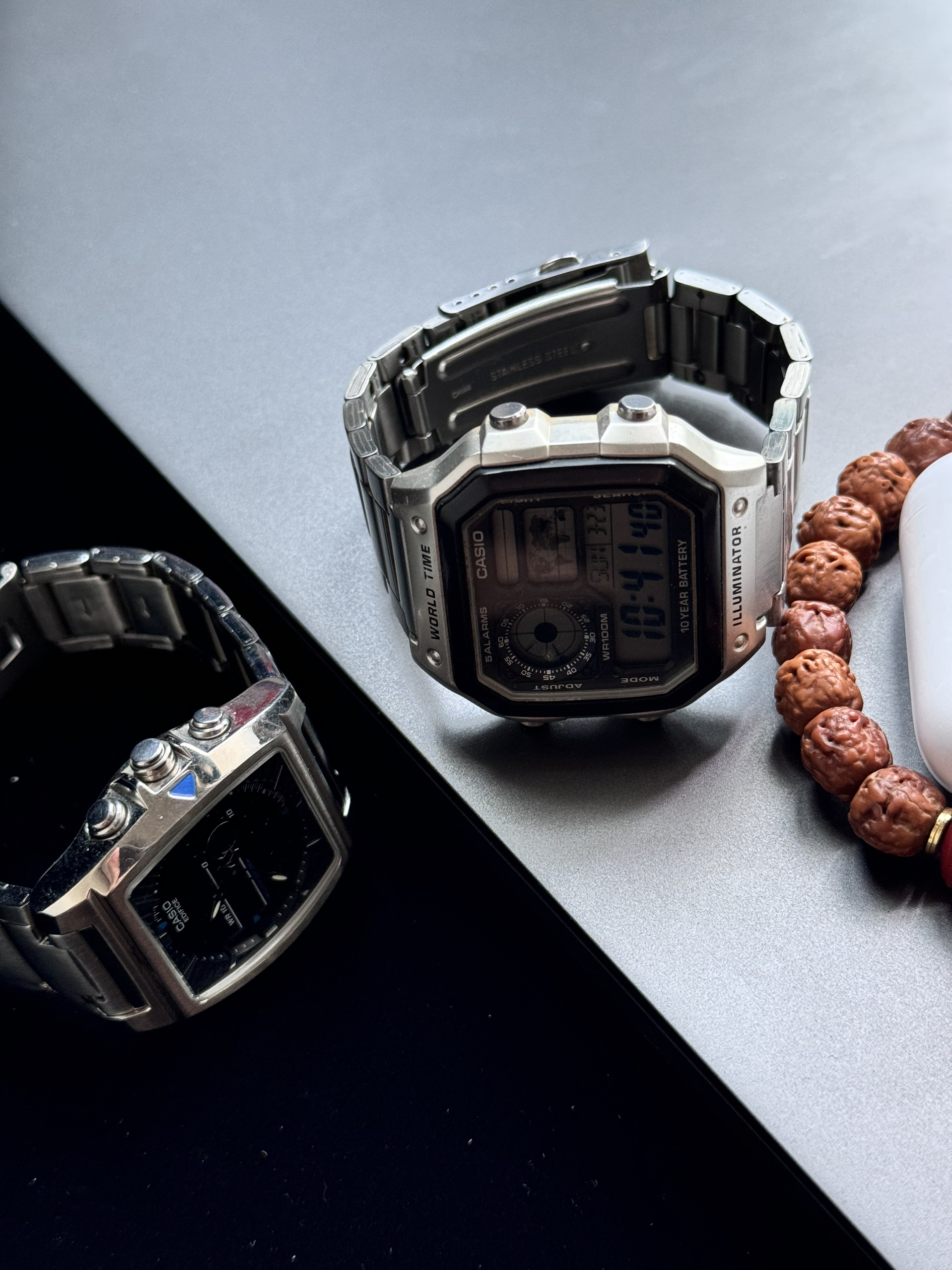 本篇笔记关联了Casio/卡西欧 VINTAGE系列 不锈钢表带高中学生复古银方块防水石英男士手表 银黑色 AE-1200WHD-1A、Casio/卡西欧 钢带方型表盘防水石英男士手表 黑色 EFA-120D-1AV等商品,为用户提供真实的使用体验和购买参考。