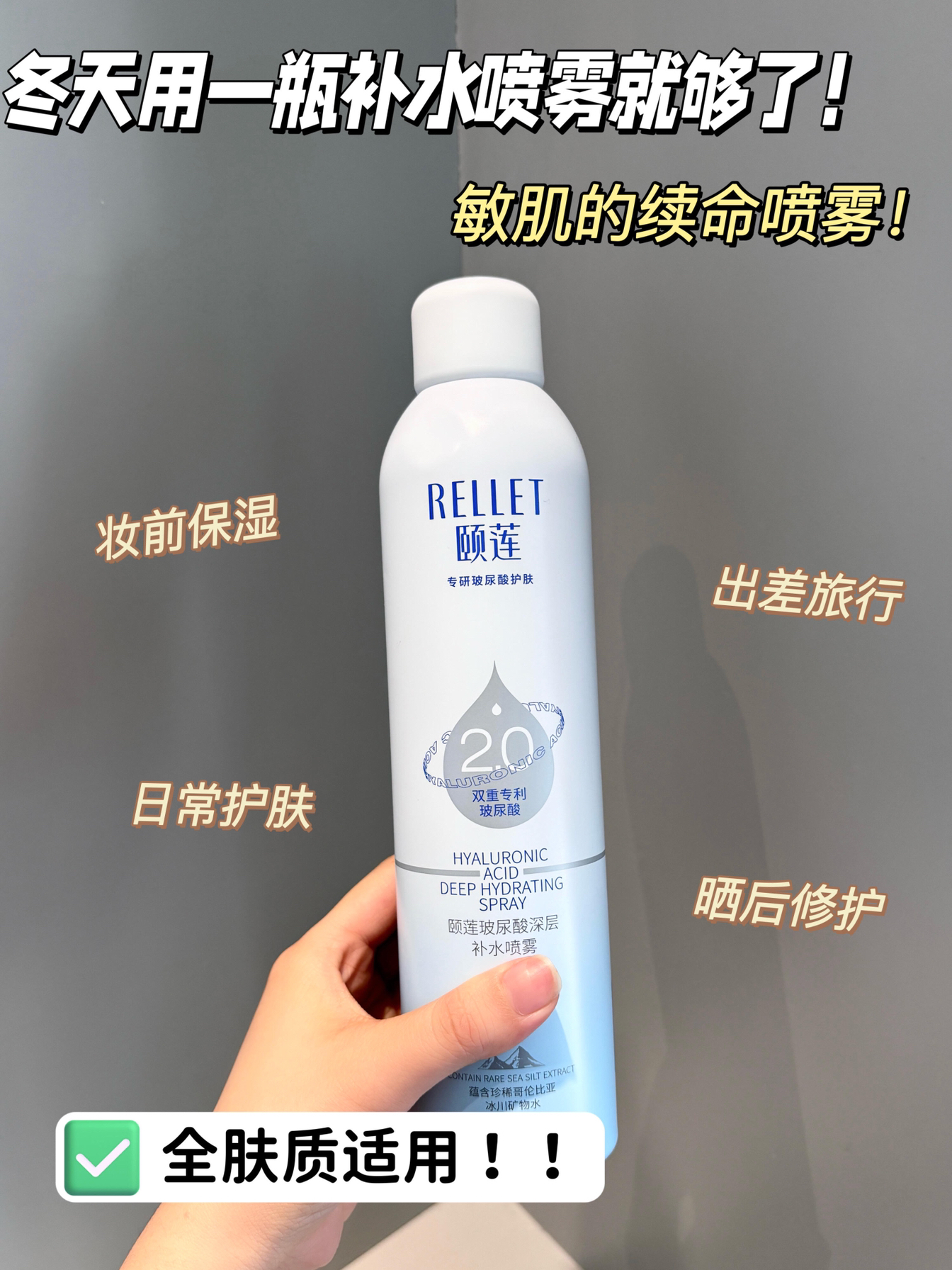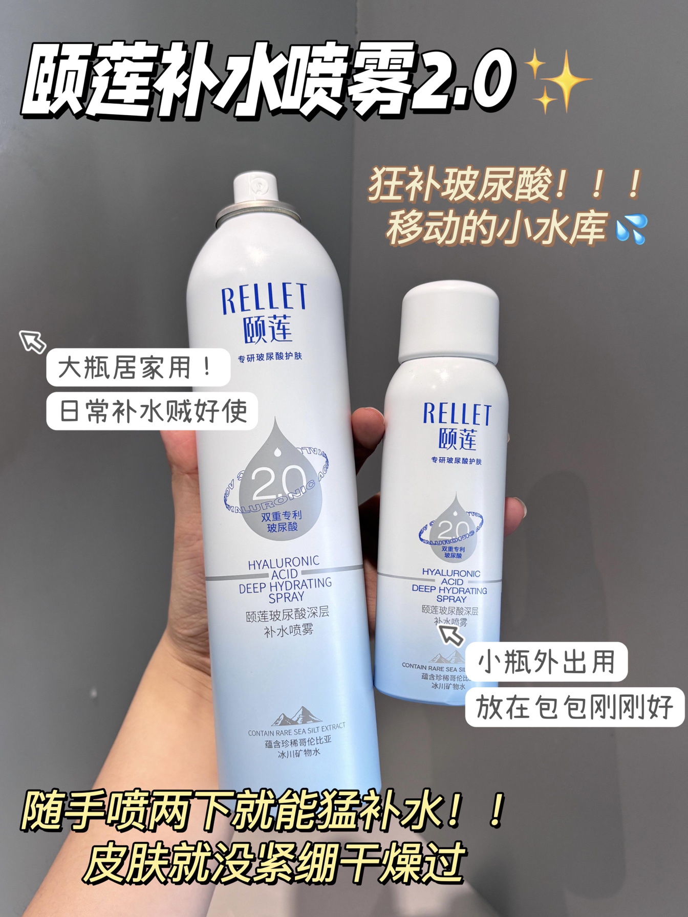 本篇笔记关联了Rellet/颐莲 玻尿酸喷雾 长效深层补水保湿小分子 【2.0】维稳修护等商品,为用户提供真实的使用体验和购买参考。