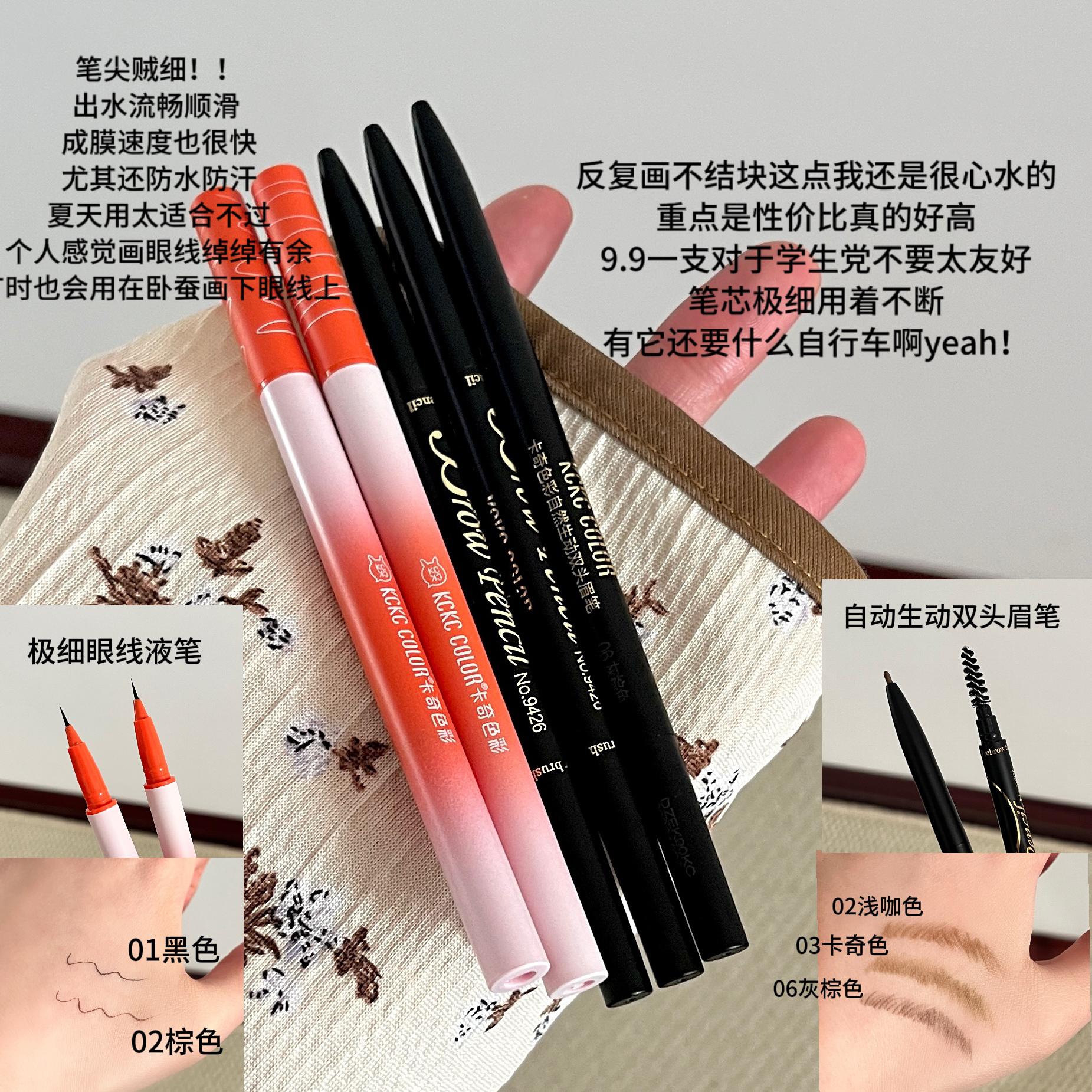 本篇笔记关联了卡奇色彩 自然生动不脱色双头极细眉笔 超细头 #03 卡其色、CLIO/珂莱欧 星沙十二色空气轻薄眼影盘 哑光 7.2g 01焦糖甜橙 Coral Studio、CLIO/珂莱欧 星沙十二色空气轻薄眼影盘 哑光 7.2g 02奶油蜜桃 Rose Connect等商品,为用户提供真实的使用体验和购买参考。
