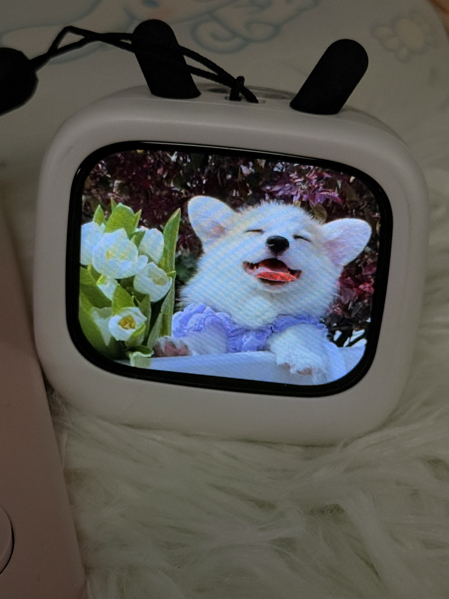 #联名款好礼物 #学生党智能好物分享 ##学生党平价数码分享 BG小电视耳机 超可爱!! 可以设置动态壁纸 滚动弹幕 实时显示歌词 还可以挂在脖子上防丢嗷~