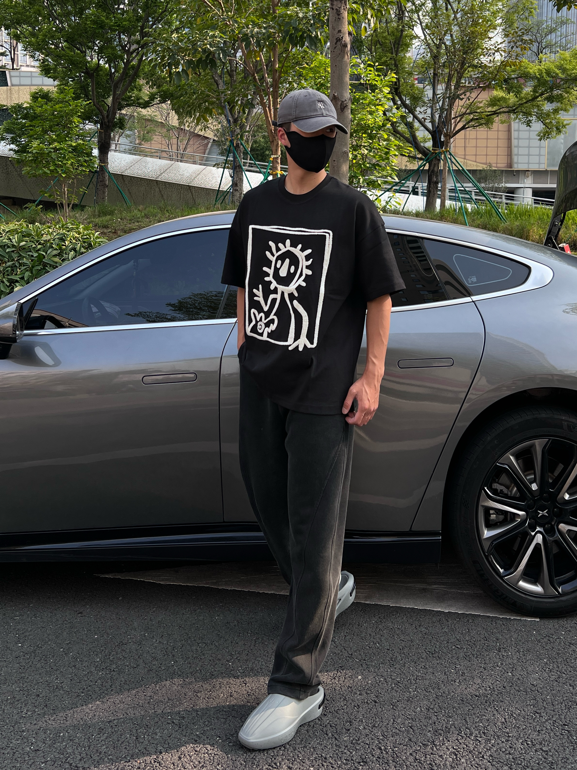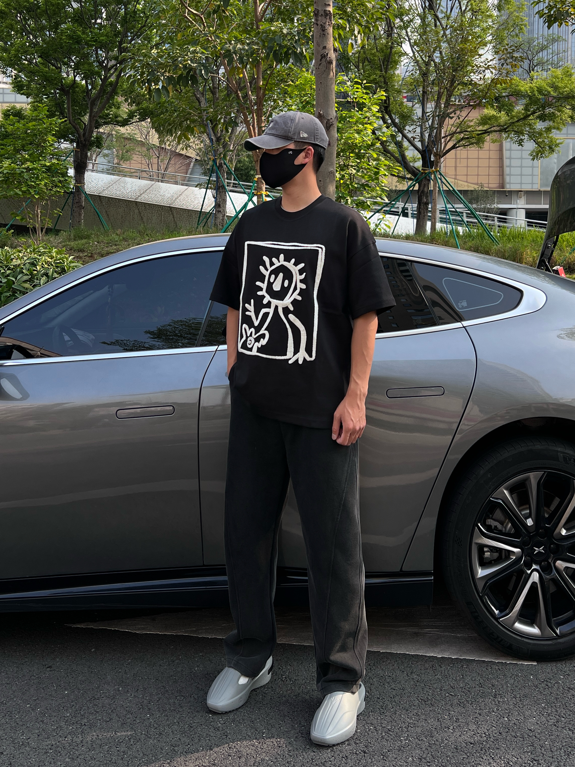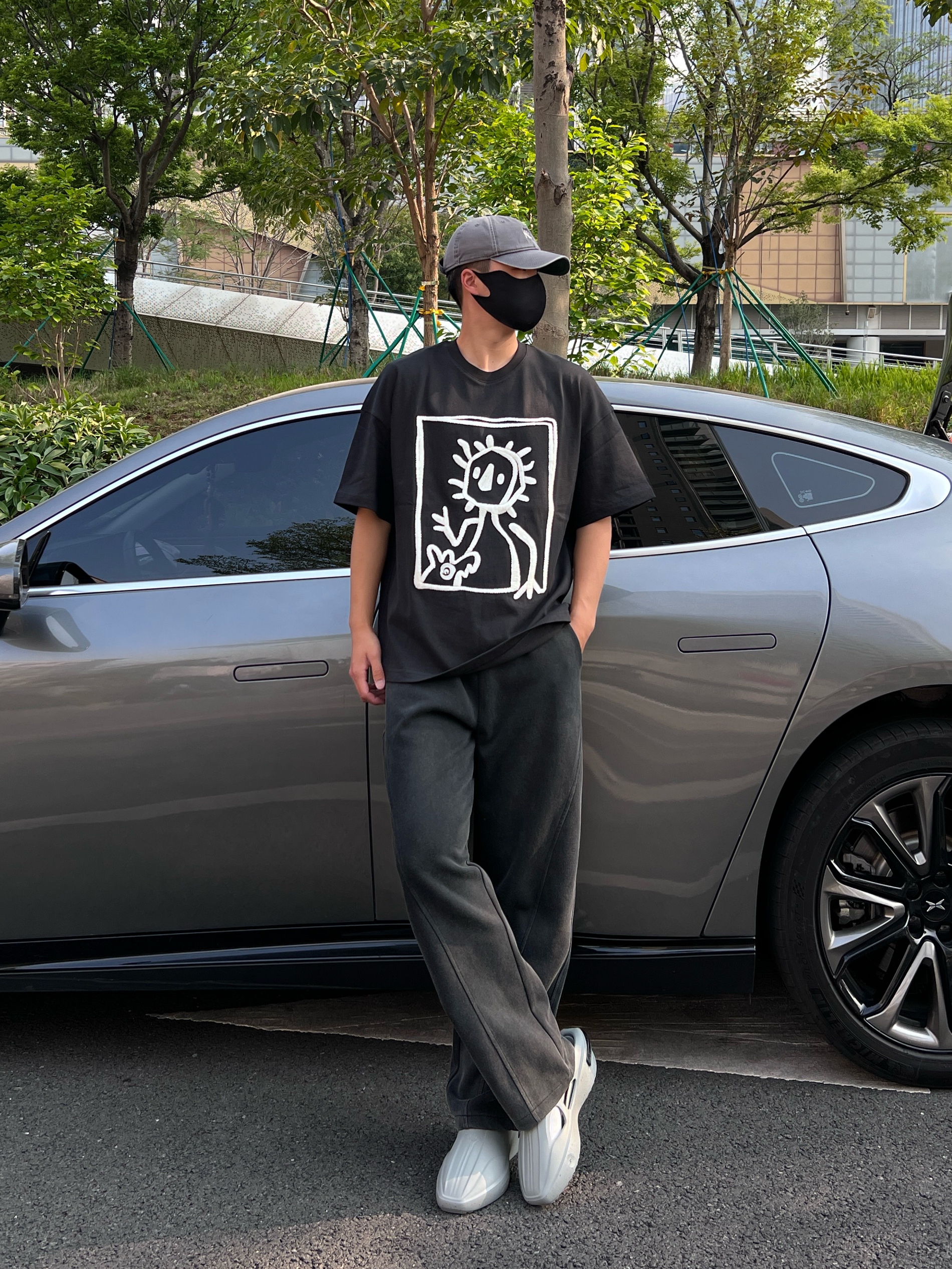 分享今日份OOTD 短袖和裤子选择的都是黑色比较显瘦 亮点是脚上这双361°潮拖 约基奇代言的 上脚舒适又好看