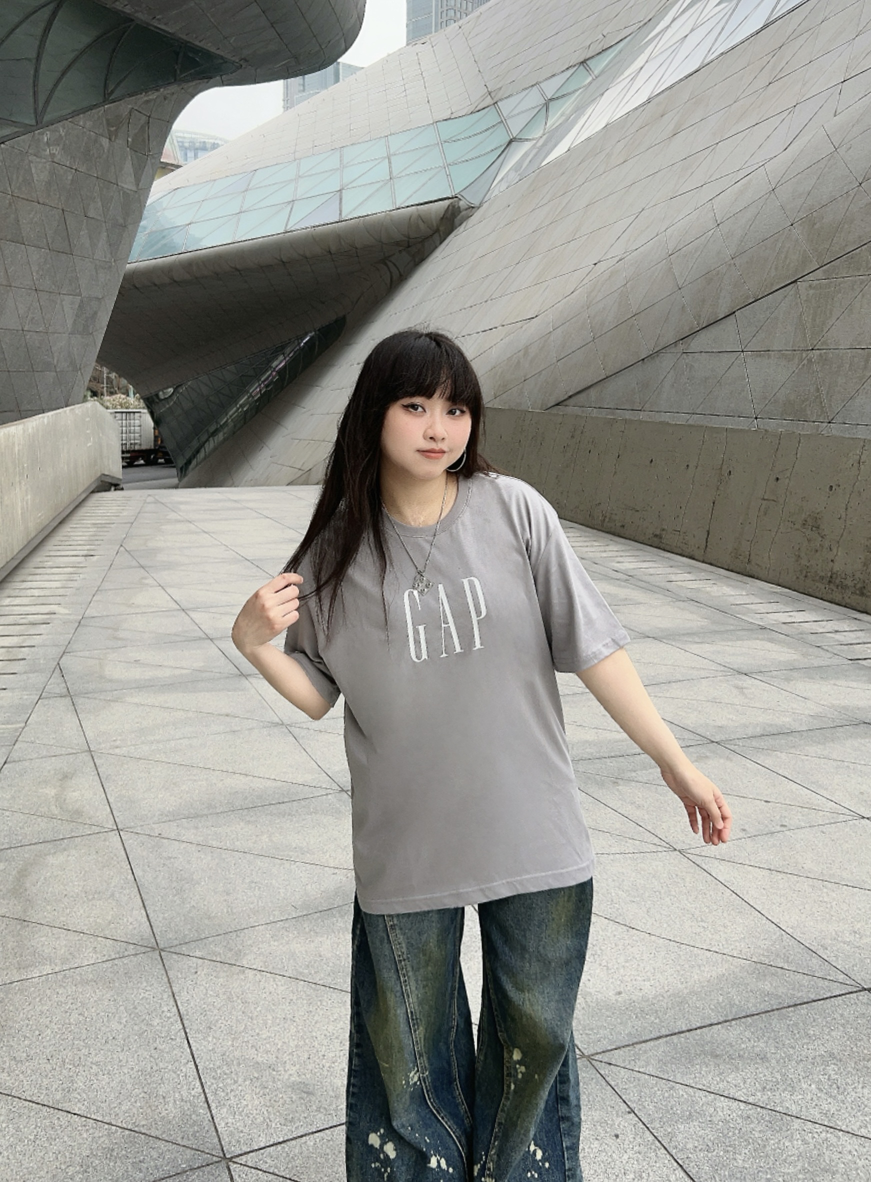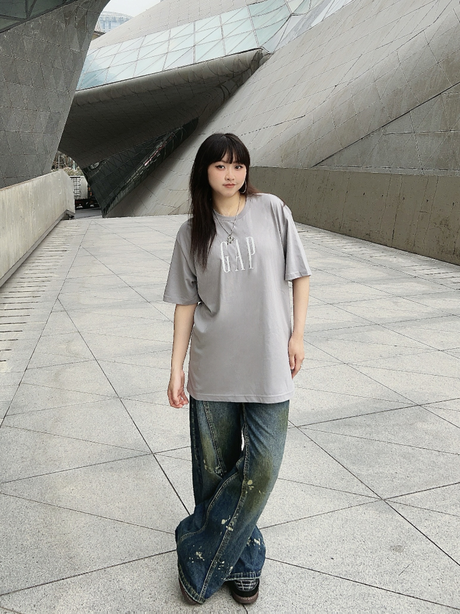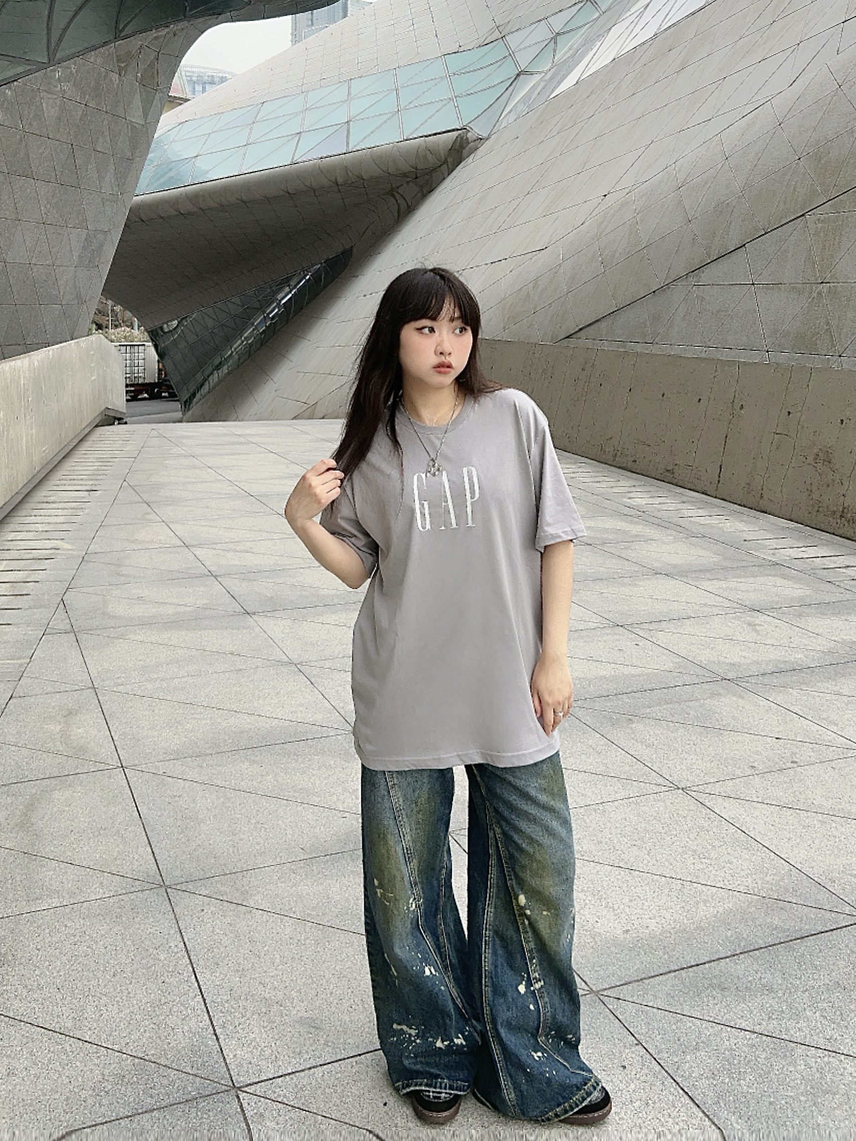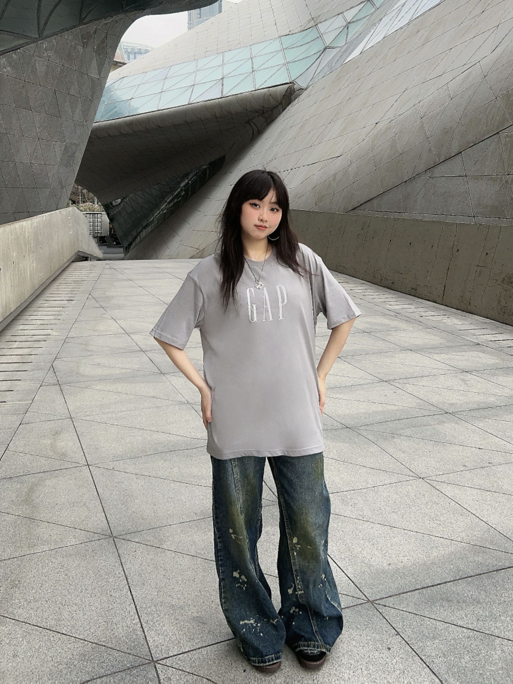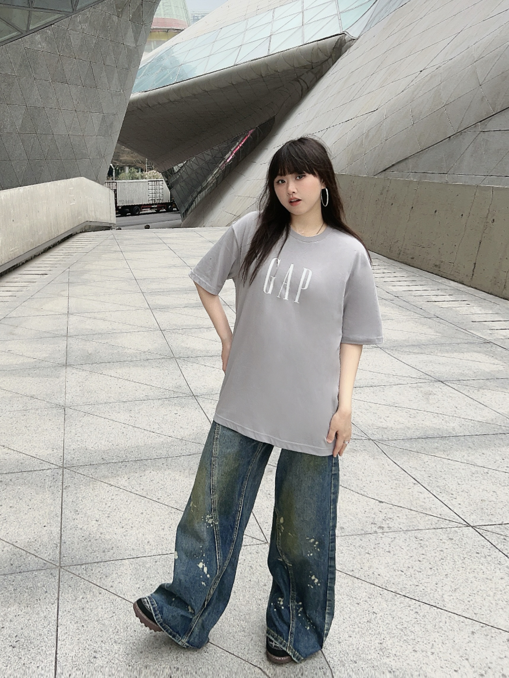 ✔️158/100/M 📎Cleanfit户外穿搭一下子,简单出个门! ✔️少不了宽松舒服的GAPT恤,这件的面料很轻薄,灰色系也很高级,搭配了同风格的牛仔裤👖,简约又有松弛感