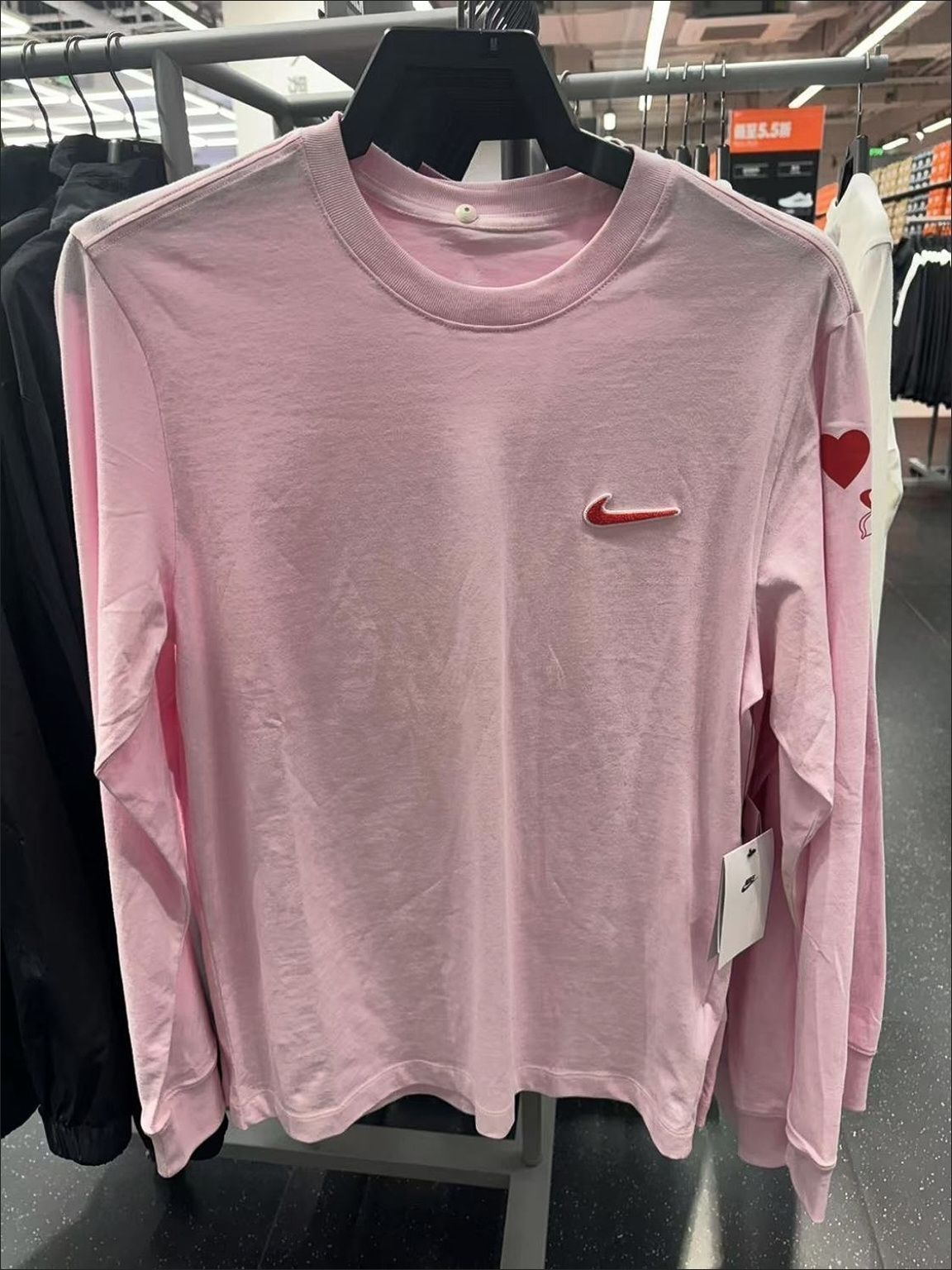 本篇笔记关联了Nike/耐克 情人节系列高能感丘比特印花刺绣纯棉正肩袖叠搭长袖T恤 FV3994 泡沫粉等商品,为用户提供真实的使用体验和购买参考。