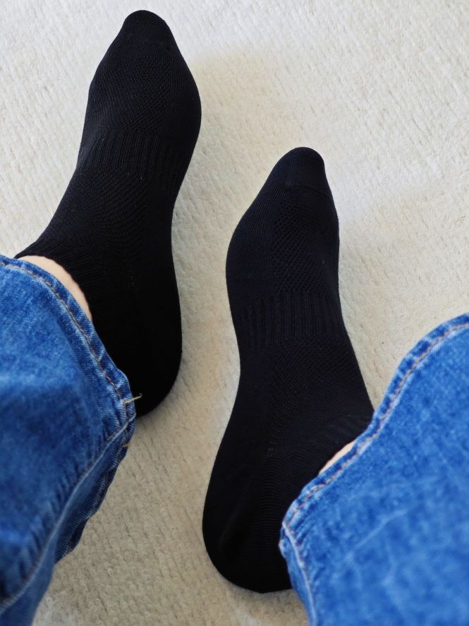 黑色鞋子真的是百搭之王了,我觉得搭配哪双袜子都很好看,各有各的特点,黑色隐形,白色撞色。纯棉的袜子,舒适透气,网面透气孔设计,夏天这样穿也不用担心闷热。 斐乐家的鞋子品质一直不错,猫爪也是经典ip,好看又好穿,而且多种配色可以选择,无论是上班通勤还是户外运动选它准没错!