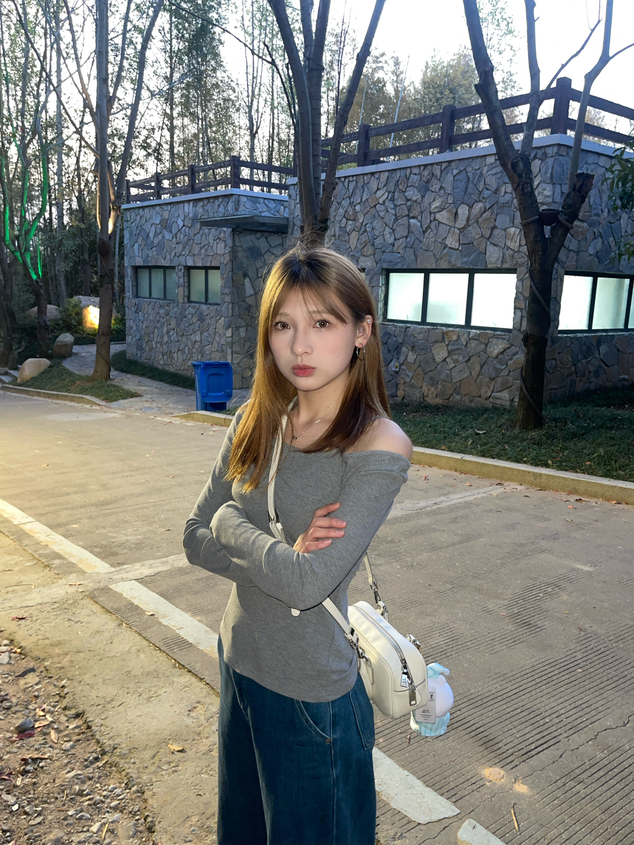 好好看的一个灰色斜肩上衣呀 真的好显瘦呢 特别好看的一件!