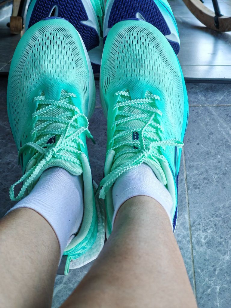 361。飞燃3ET的新配色极光蛋壳绿真的好耐看 上脚轻巧,通勤穿也没压力。透气性也挺好, 最近成都气温攀升,穿着没有闷热感。可以闭眼入