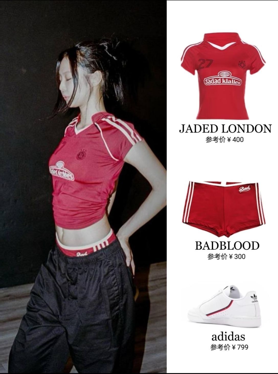 近期的jennie辣妹装合集来喽 与生俱来的时尚感真的没话说 又甜又辣😎,直接撞到心巴上了 把adidas的鞋子搭配的日常又随性 别让人太爱了💘💘💘