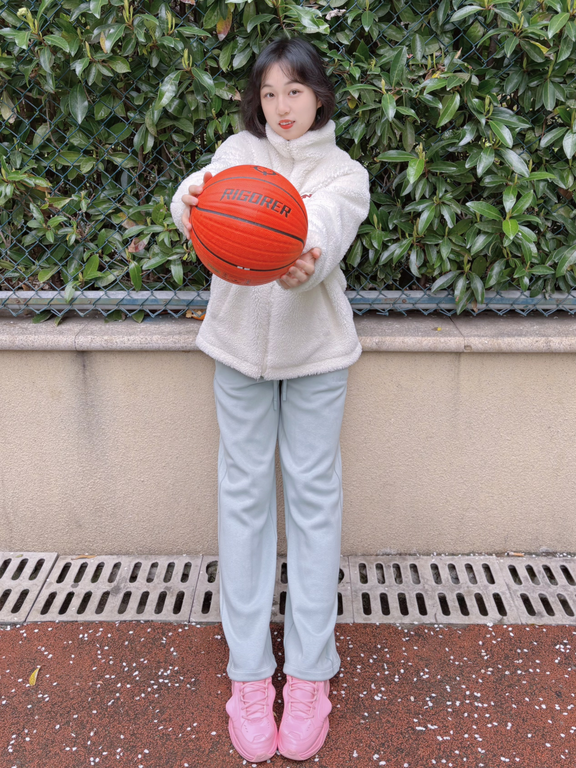兴趣爱好从不该被定义 女生也可以在球场上挥洒汗水💦 最近打球训练很喜欢用这个篮球 橙色的配色很亮眼好看🤩 防滑耐磨的材质,尊嘟很棒 日常打球耐用且顺手☺️ 今日份篮球穿搭 搭配白色羊羔绒 和薄荷绿色lululemon裤子 一套清新的穿搭🌿 🏀: 准者 RIGORER