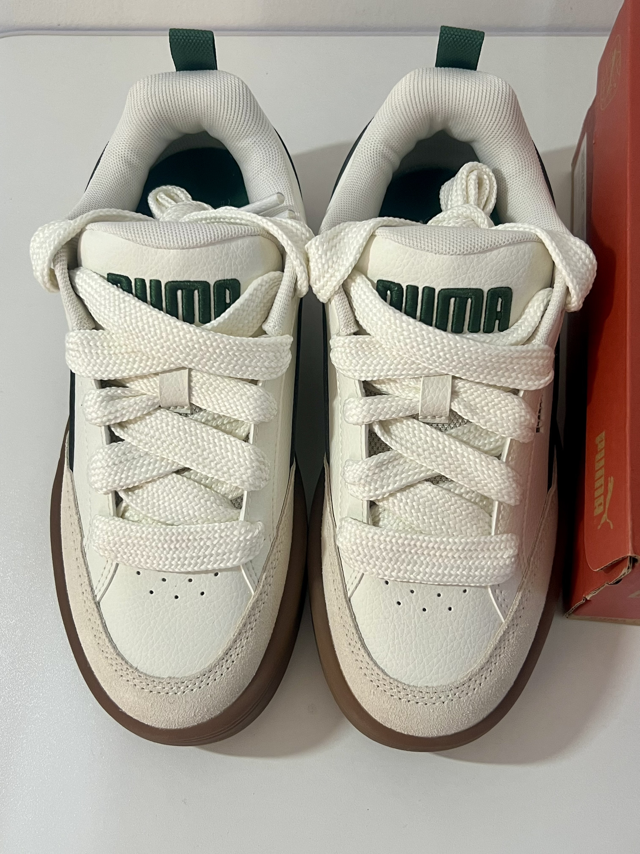 本篇笔记关联了Puma/彪马 Park Lifestyle OG 面包鞋 板鞋 百搭休闲轻松舒适防滑耐磨复古轻便增高包裹性 白色/深绿色等商品,为用户提供真实的使用体验和购买参考。