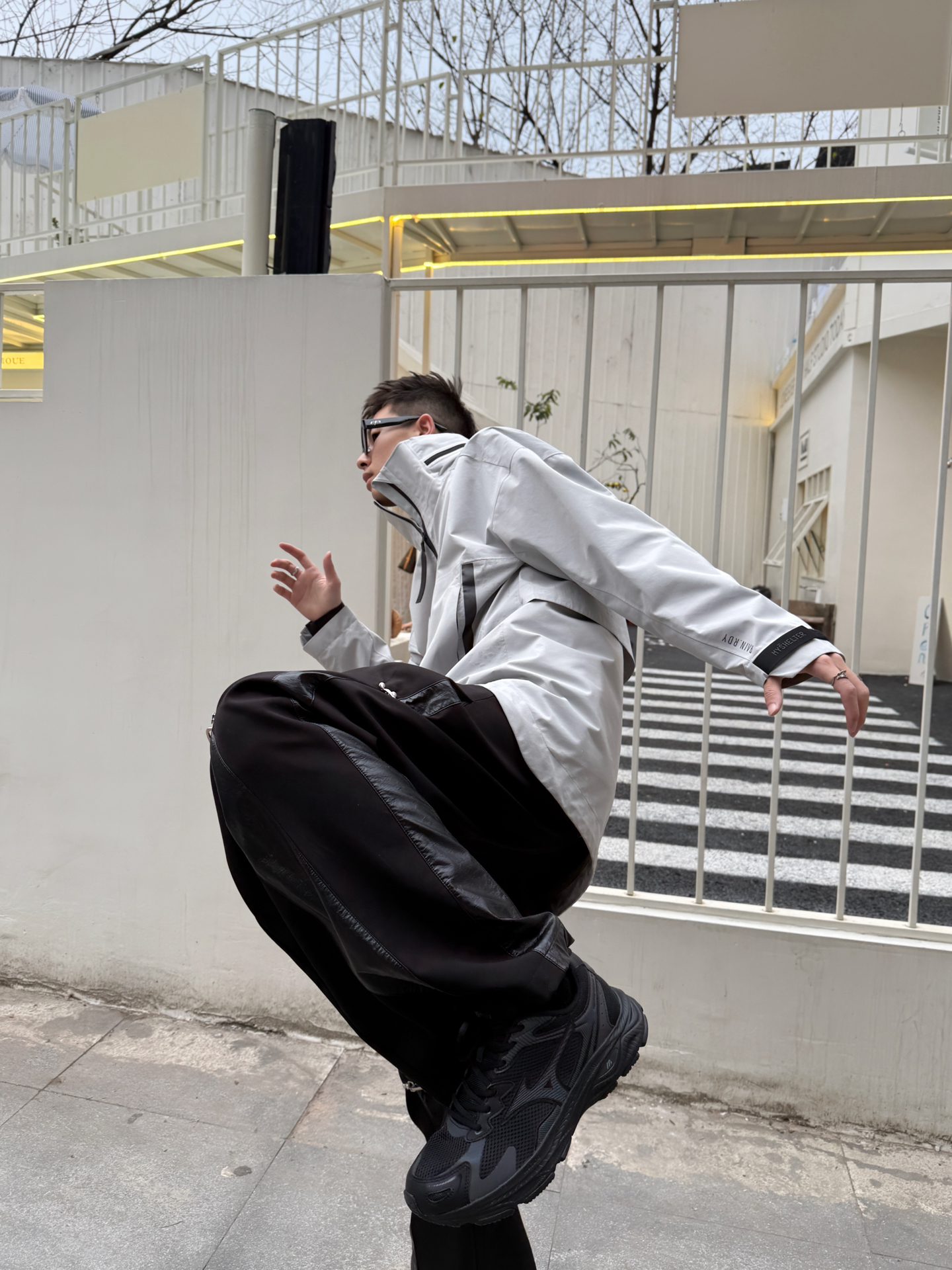发现没?穿Mizuno这双黑武士出街自带隐身buff…才怪! 👟这网面跑鞋轻到像穿拖鞋遛弯!鞋底软得跟踩史莱姆似的(懂的都懂),下班猛冲赶地铁都不带崴脚的!关键黑鞋白标越脏越有流浪诗人内味,下雨天蹚水回家晾半小时直接复活👌🏻 🧥灰冲锋衣拉链一拉到底秒变冷脸杀手,袖口魔术贴随便卷两下就能塞奶茶(别问我为什么知道),配🩳黑休闲裤直接瘦成一道闪电⚡️裤脚堆在鞋口刚好露出脚踝,心机显腿长但不说...
