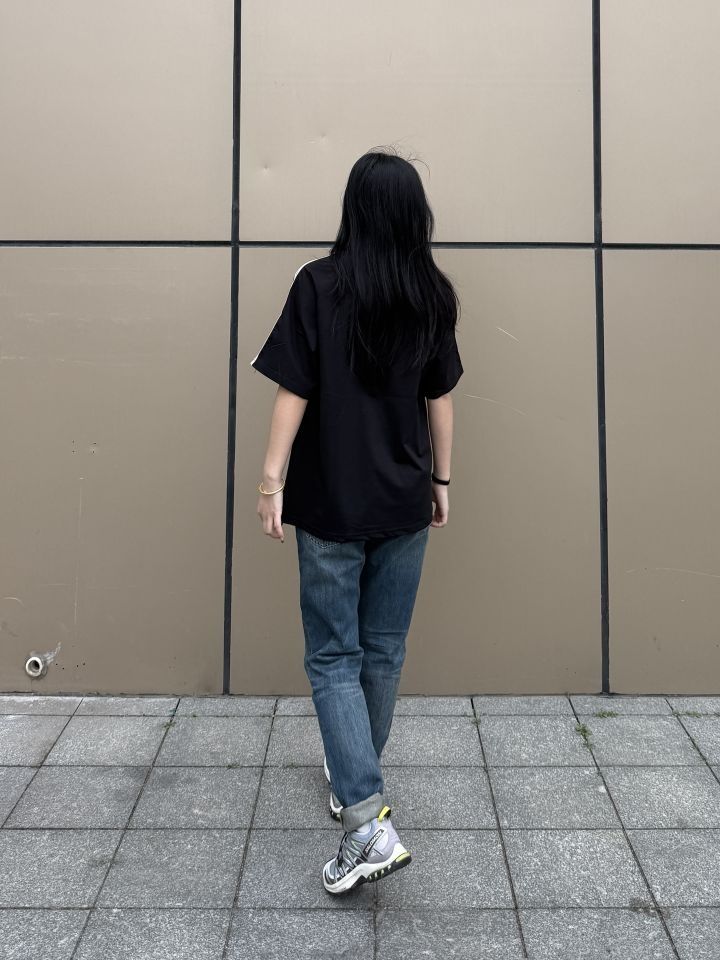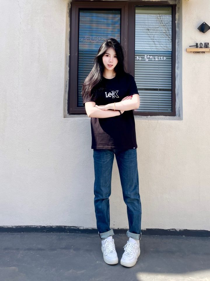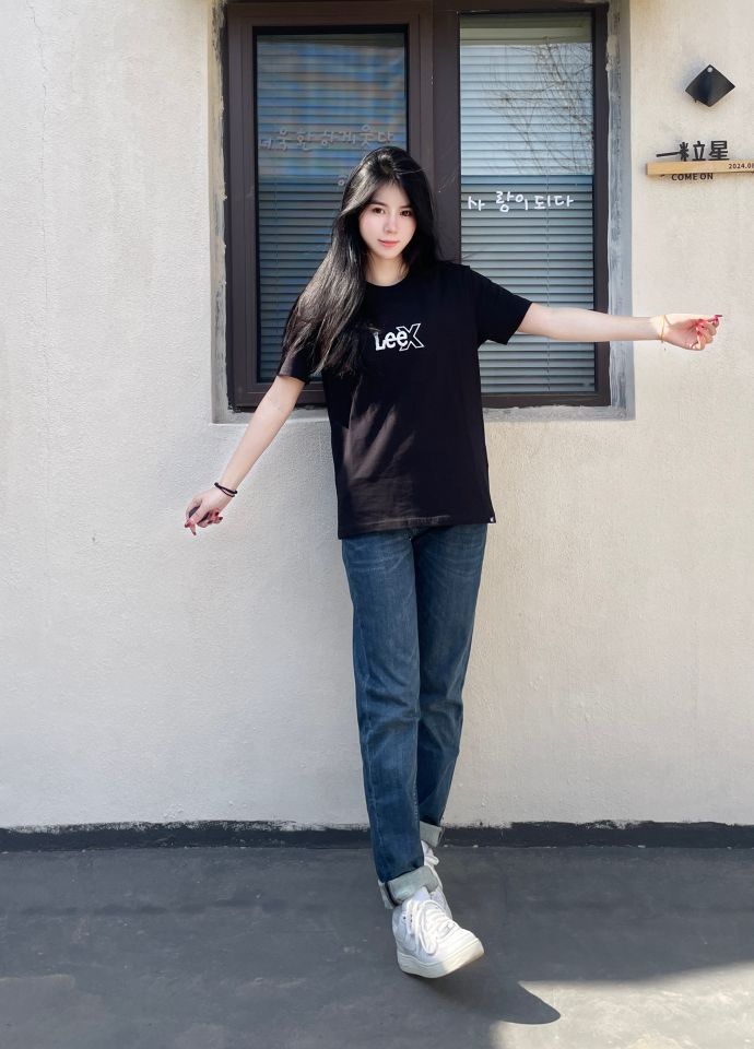 穿搭灵感📢 简约干净风格 果然穿搭的尽头是极简风 黑色搭配牛仔裤经典又好看 而且这件黑T恤的面料柔软有质感 搭配牛仔裤简单清爽 这两条裤子的版型也很不错 我168 100斤穿的是27码和m
