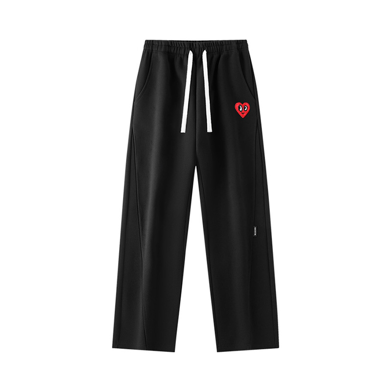 兄弟们,卫裤真的是必备神裤,这条卫裤安排上!直筒版型超显腿直,抽绳灵活调节。爱心刺绣个性有趣。随便搭配一条舒适的短袖,都能轻松出彩,绝对是衣橱必备款!