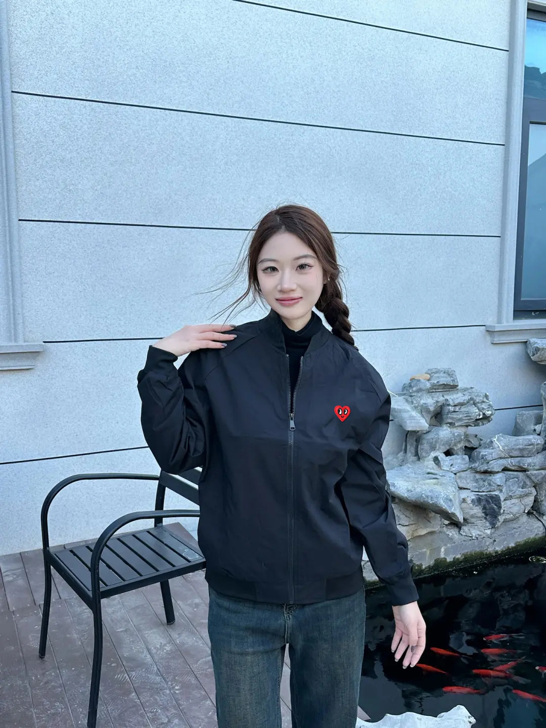 宝子们,还在纠结春秋穿啥外套?这件棒球夹克必须种草!拉链开合超实用,爱心刺绣俏皮满分。春秋时节,套上它,轻松拿捏春秋时尚