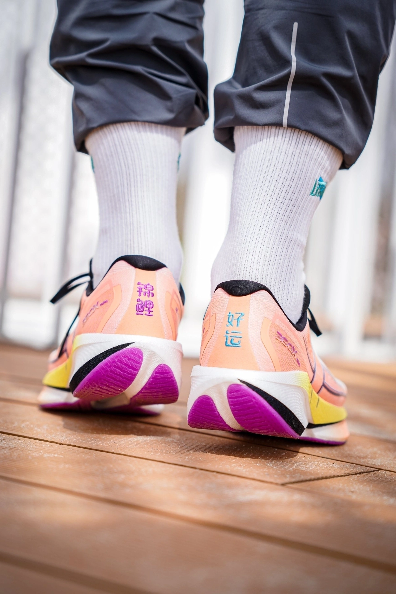 体考把“好运”踩在脚下❓这双360X 2.0锦鲤配色橙紫撞色鞋身,活力拉满,后跟“好运锦鲤”刺绣+鞋垫彩蛋,颜值高寓意好💯 T400异构碳板+加宽中底,搭配过弯助力槽设计,既有劲又很稳。XTEP ACE中底上脚我感觉是韧弹不泄力,飞织鞋面透气轻薄,体考千米冲刺、跳远蹬地、日常校园跑都没啥问题~穿上它 心里感觉离满分更近了👀 新一代#国民碳板跑鞋 #321跑步节 #跑出飞一般 #特步360...