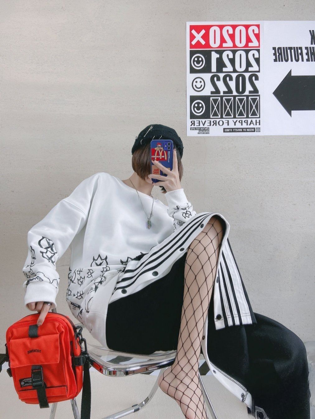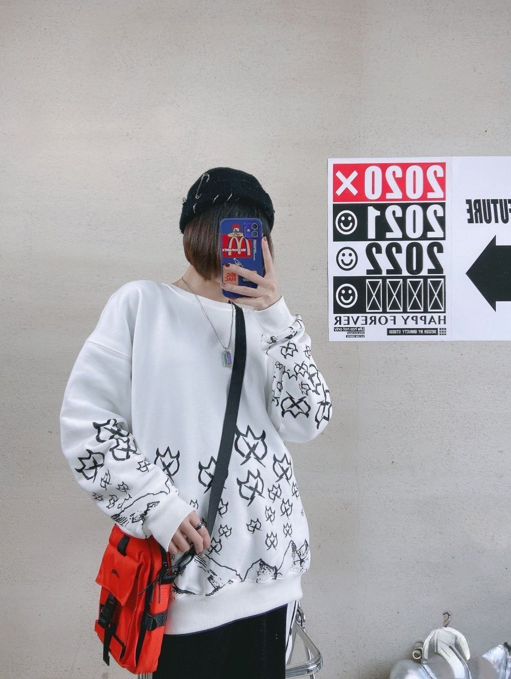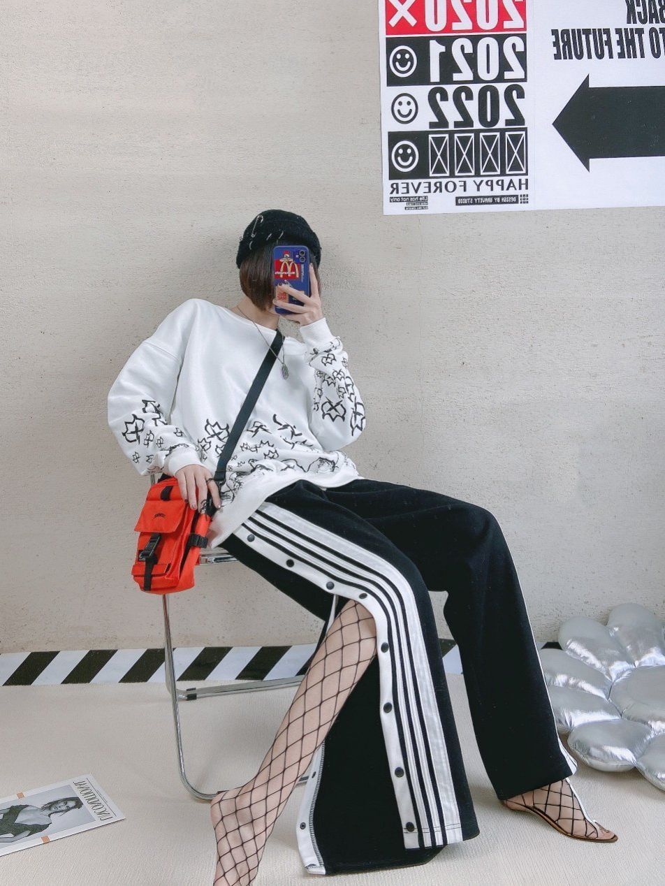 ootd今日份# 卫衣:雷霆万钧 版型很正的一件卫衣略宽松不挑人白色作为 底色百搭黑色不规则印花很有个性是男女都 可驾驭的款面料穿着舒服内里有一层薄薄的 加绒春秋单穿打底都ok172 L码合身 排扣裤:m5is 纯棉毛圈布面料直筒稍宽松设计不挑人是男 女都可穿的款两侧白色条纹拼接 可打开纽扣 黑色很好搭配这款有黑/灰两色选择都属于 百搭款172m码略宽松 包包:ACROSS 项链: Origina...