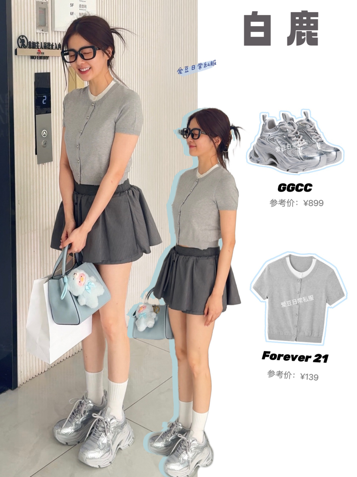 白鹿更新了3月26日上班穿搭,李佩仪这套灰色系减龄又乖巧的穿搭好美腻!白白净净的大长腿呐!春游就该美丽又可爱! CR:@Alongtheway妍途·白鹿 套装: demi et demi 包包: LOUIS VUITTON 拖鞋: Crocs 帽子: SARA WEINSTOCK