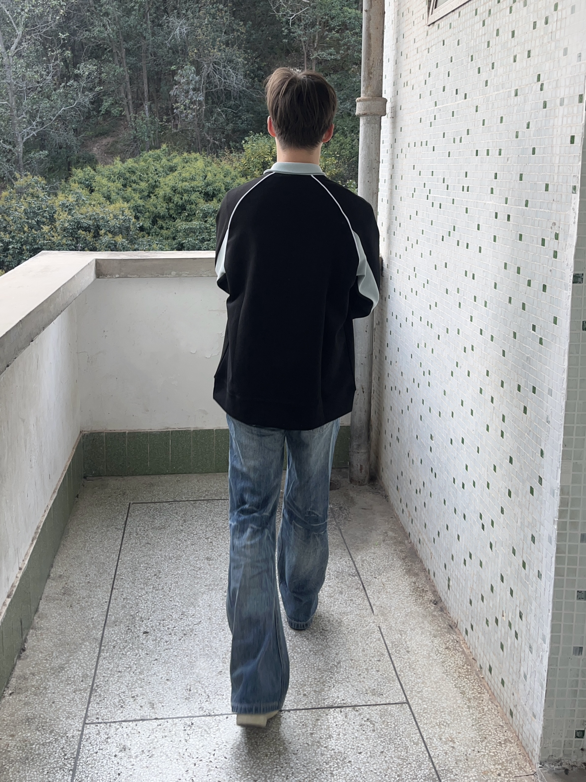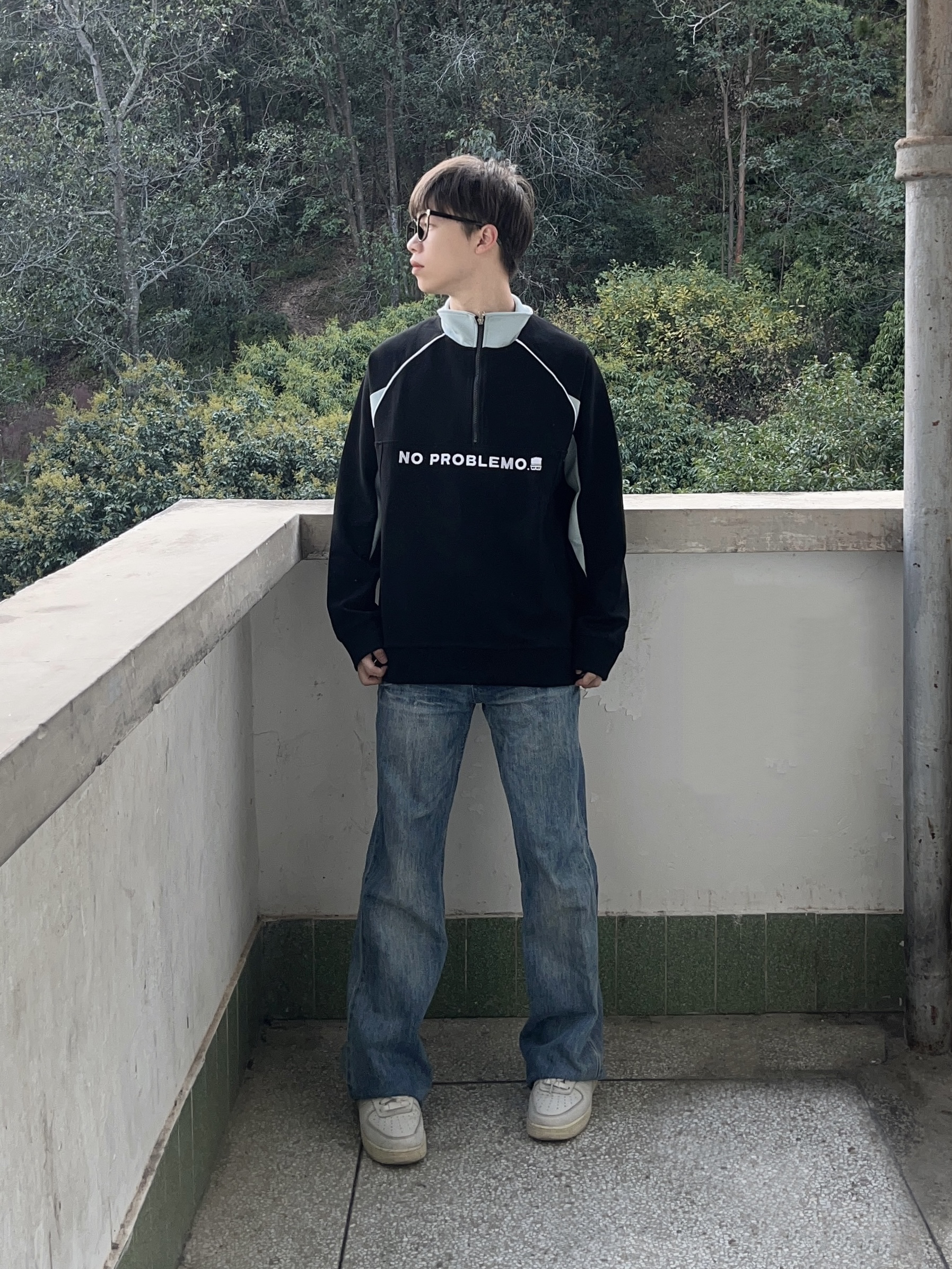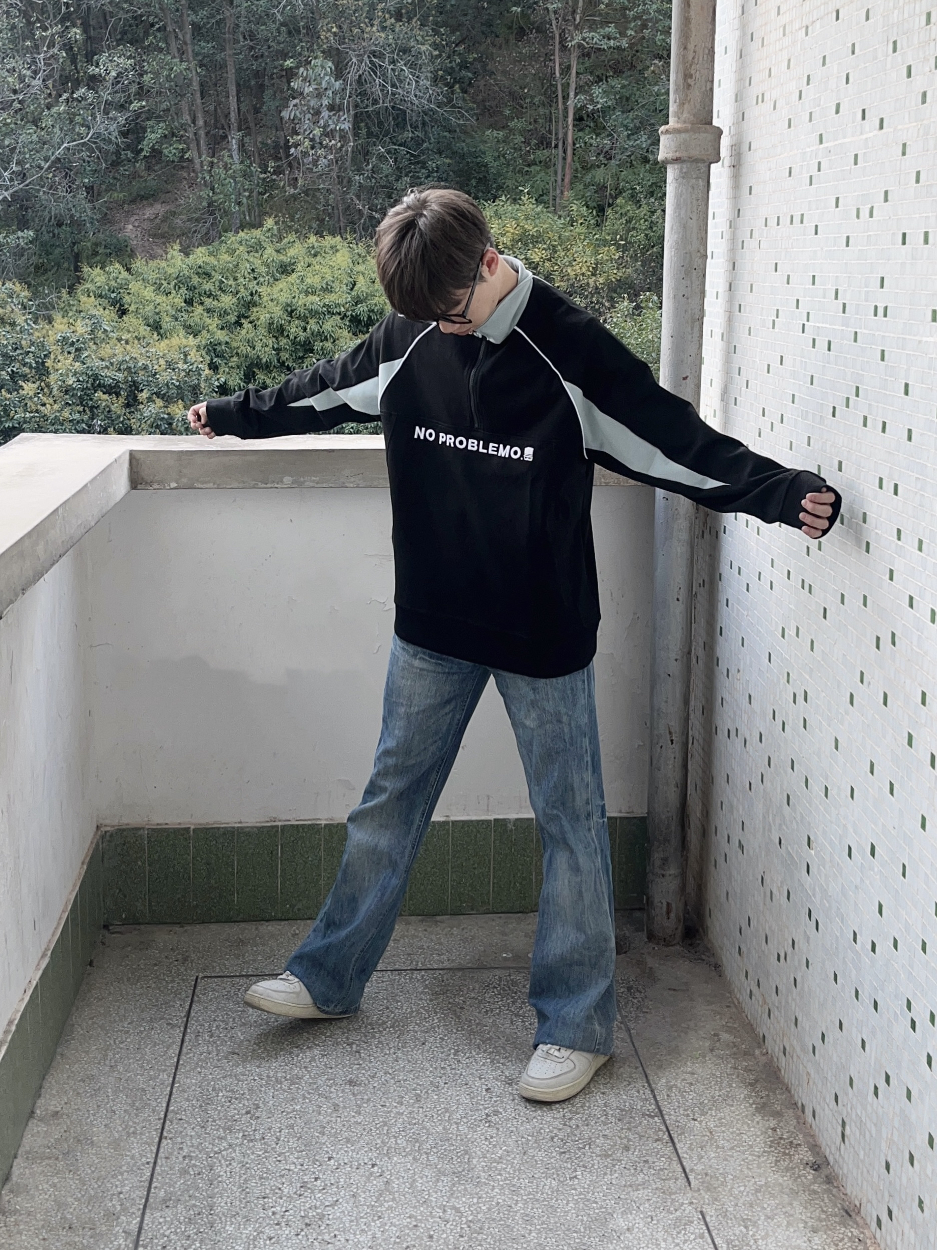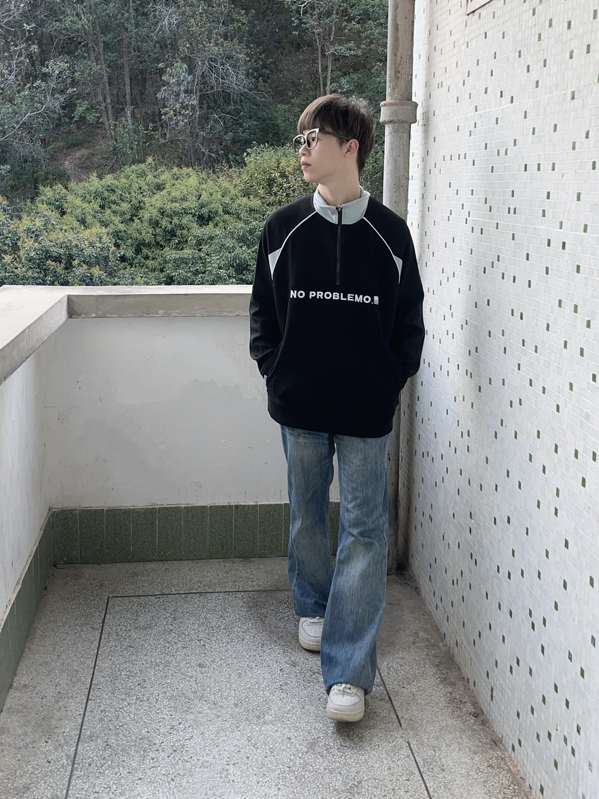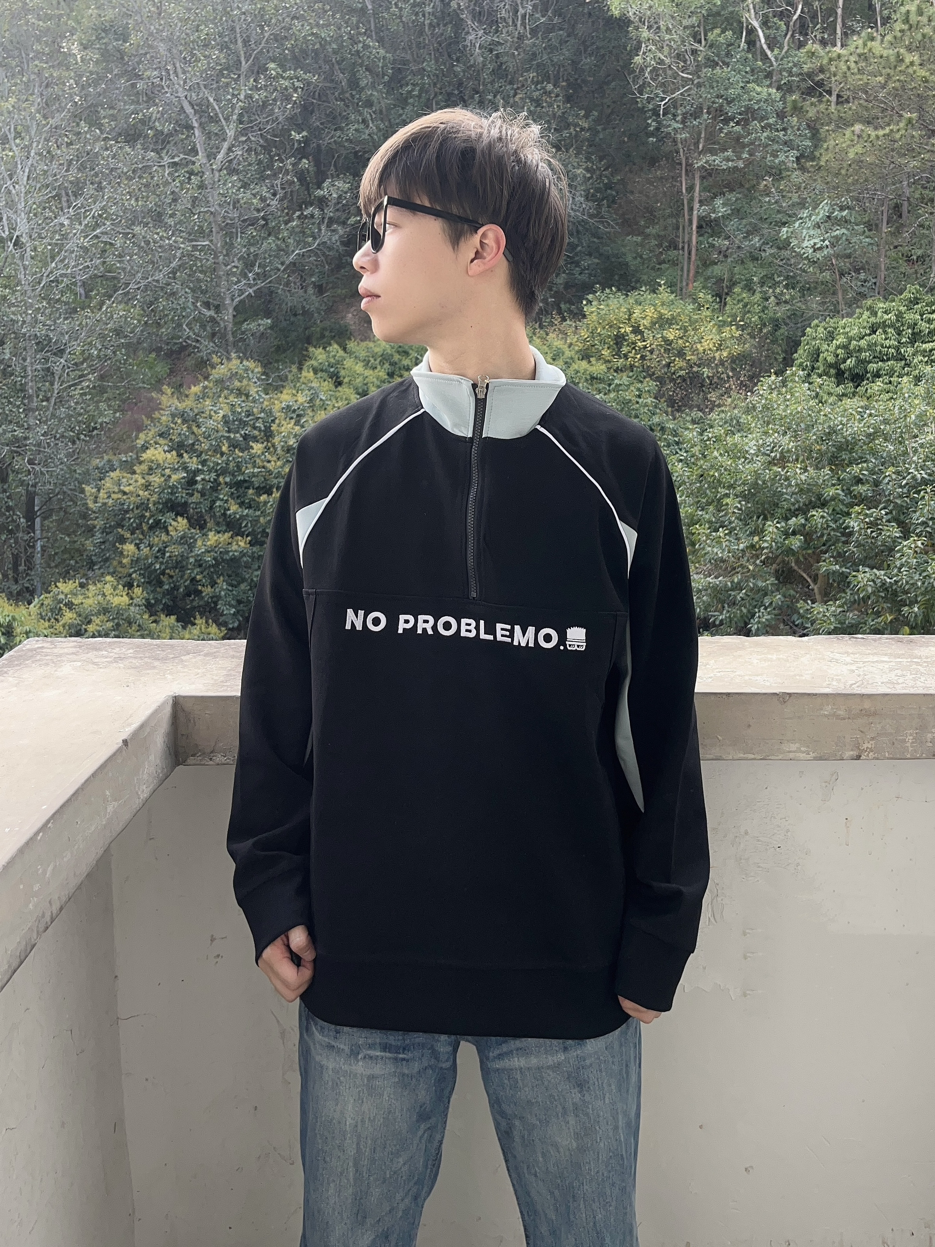 今日份穿搭分享look👀 衣服是 The Simpsons/辛普森一家 的铁黑色立领长袖上衣👔 字母绣花logo搭配拼接设计潮酷时尚 再搭配一条水洗蓝牛仔裤修饰腿型 一套搭配下来 开春户外出行百搭又好看🔥