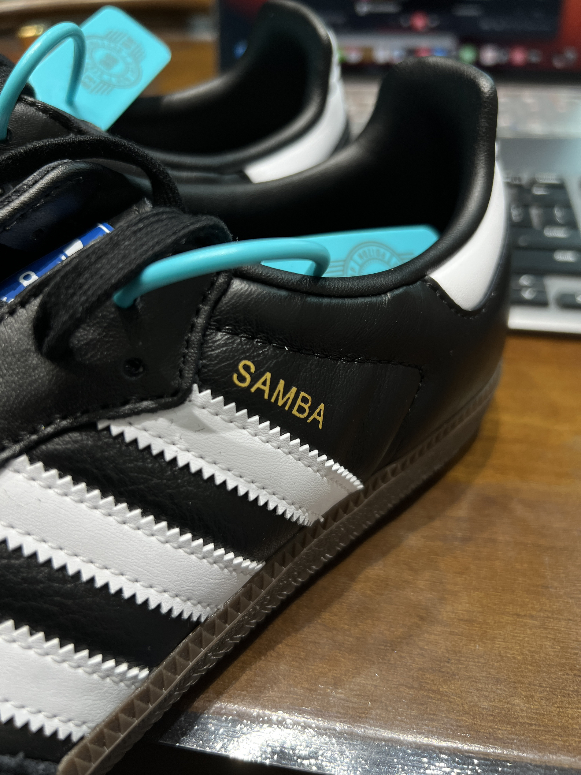 穿在脚上竟然这么帅! 鞋面是皮革拼接! 侧边三条白色杠点缀。 真的是被颜控了…