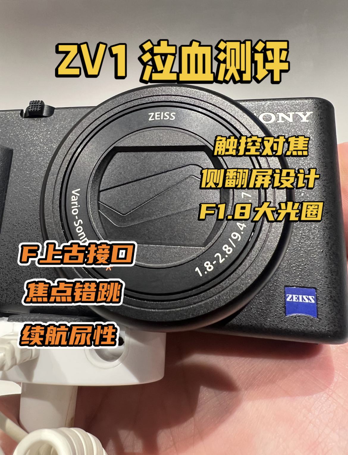 看到这枚蔡司镜头,你应该知道今天的主角就是这台ZV1黑卡了 用了一段时间,把优缺点都说一下,给各位想要入手的分享下使用感受 优点: C2键的产品展示模式,拍美妆能精准咬死0.1mm唇线偏差 触控对焦比手机还灵敏 拍探店能秒切食物特写和环境氛围, 跟之前我的黑卡5对比,ZV1的侧翻屏和麦克风接口是史诗级进步 相较于自家黑卡7的24-200mm镜头,ZV1的F1.8大光圈是真香 槽点: 可拍透明包装就...